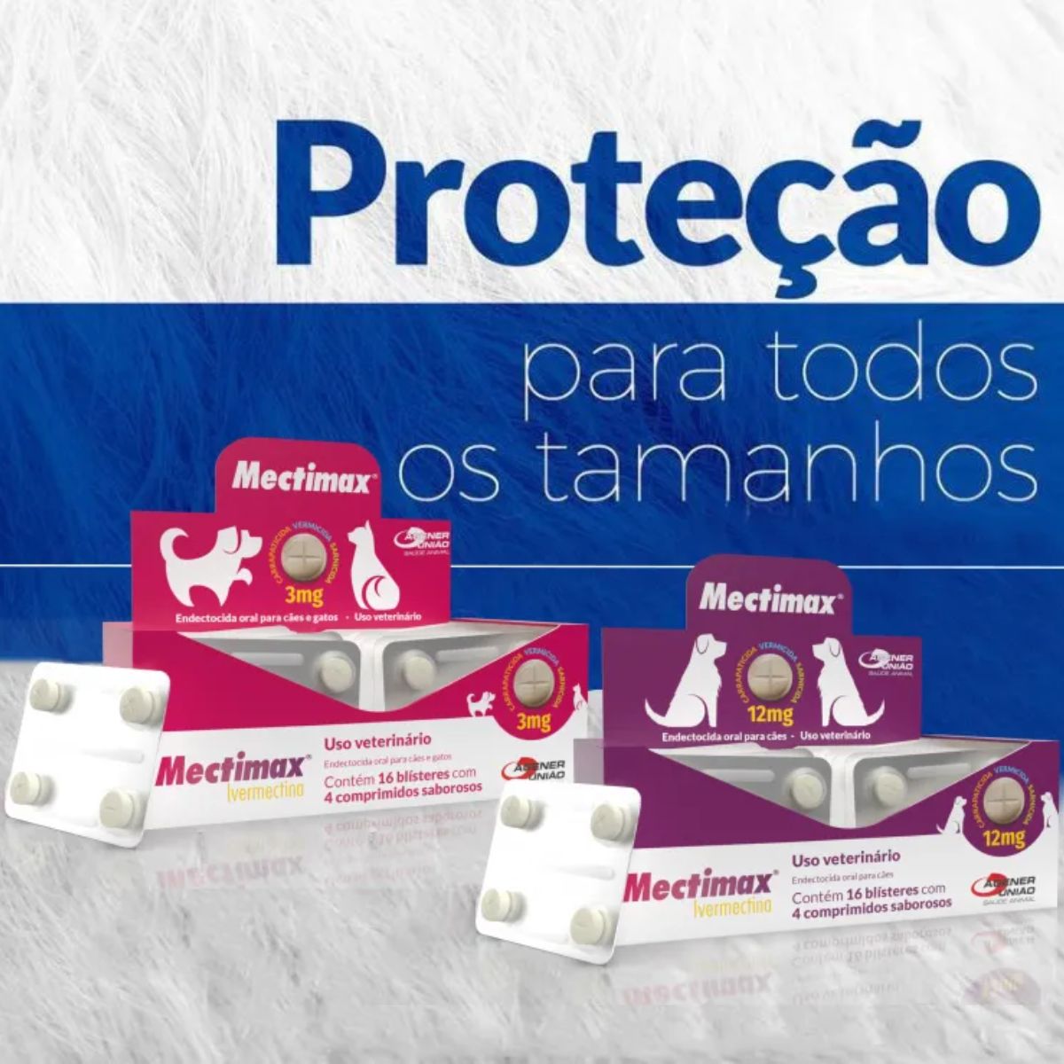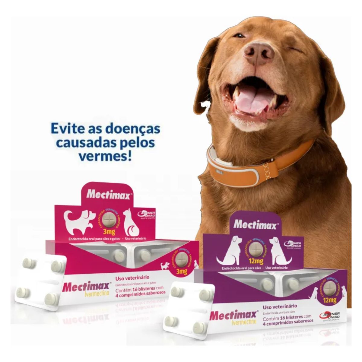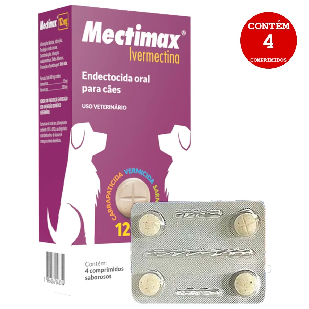 1 UNIDADE DE MECTIMAX PARA CÃES 12 MG – 4 COMPRIMIDOS – AGENER UNIÃO
