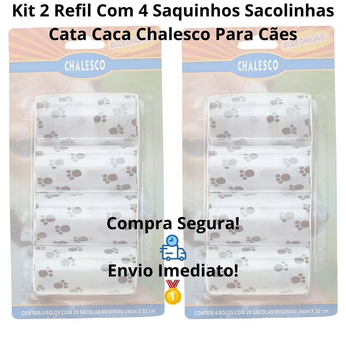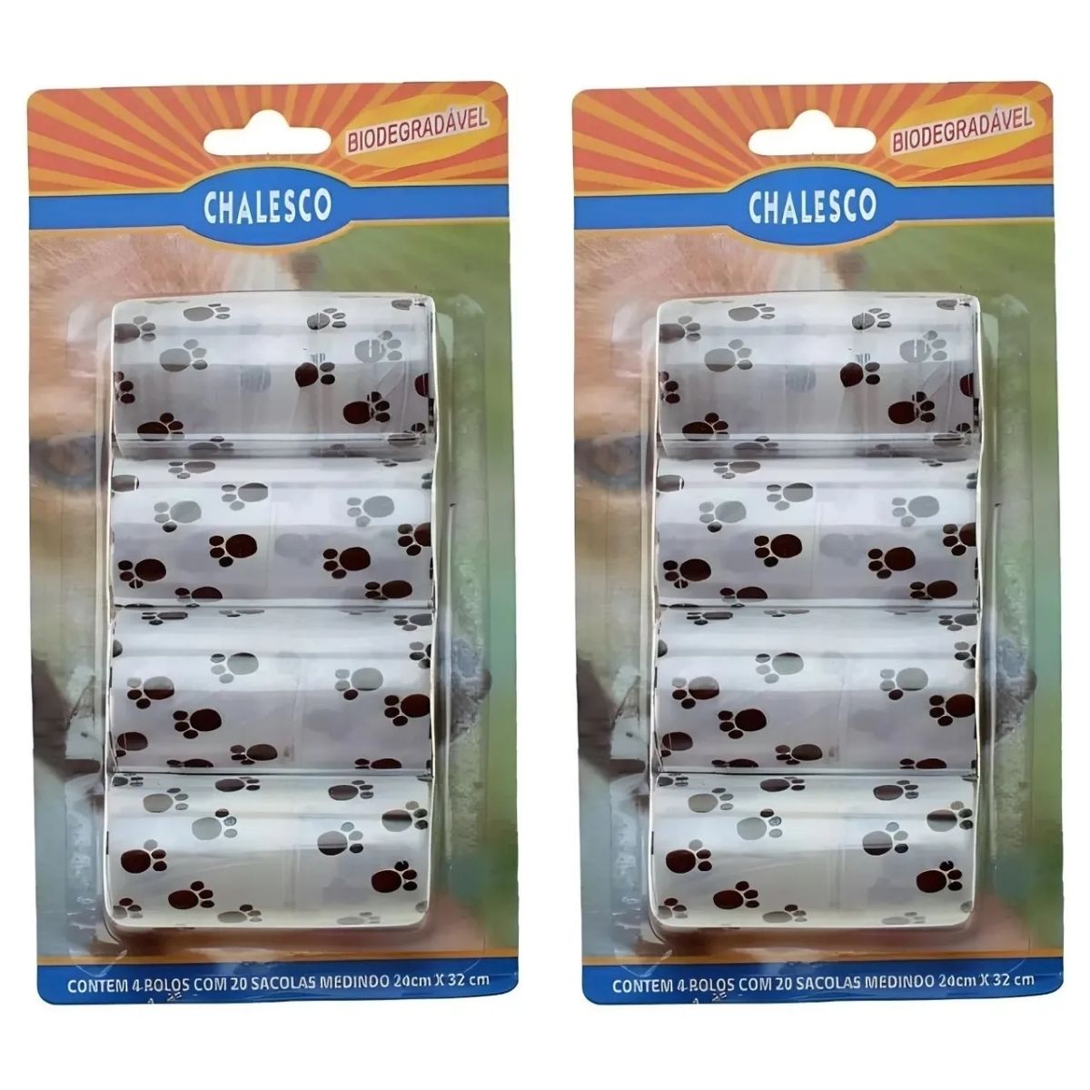 2 REFIL 4 ROLOS COM 20 SAQUINHOS BIODEGRADAVEIS CATA CACA – CHALESCO