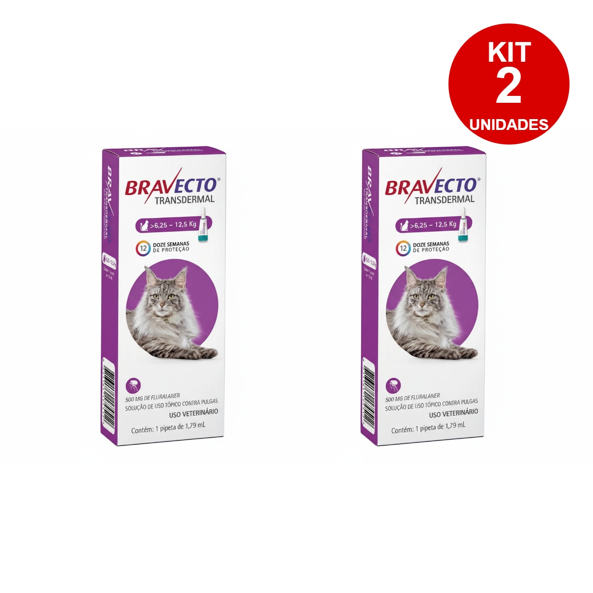 KIT 2 BRAVECTO TRANSDERMAL MSD PARA GATOS DE 6,25 A 12,5 KG – PROTEÇÃO ANTIPARASITÁRIA POR 12 SEMANAS