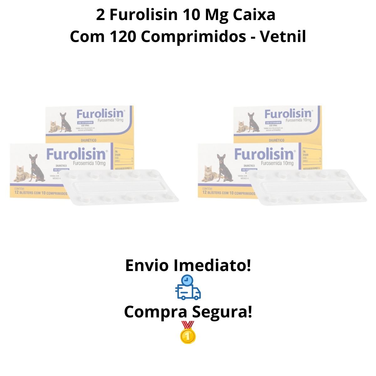 2 Caixas FUROLISIN 10MG – DIURETICO PARA CAES E GATOS – VETNIL Com 120 Comprimidos Cada.