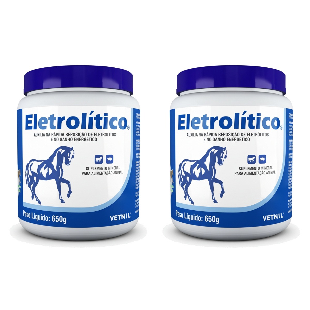KIT 2 ELETROLÍTICO PÓ 650G VETNIL – REPOSIÇÃO RÁPIDA DE ELETRÓLITOS PARA EQUINOS E SUÍNOS