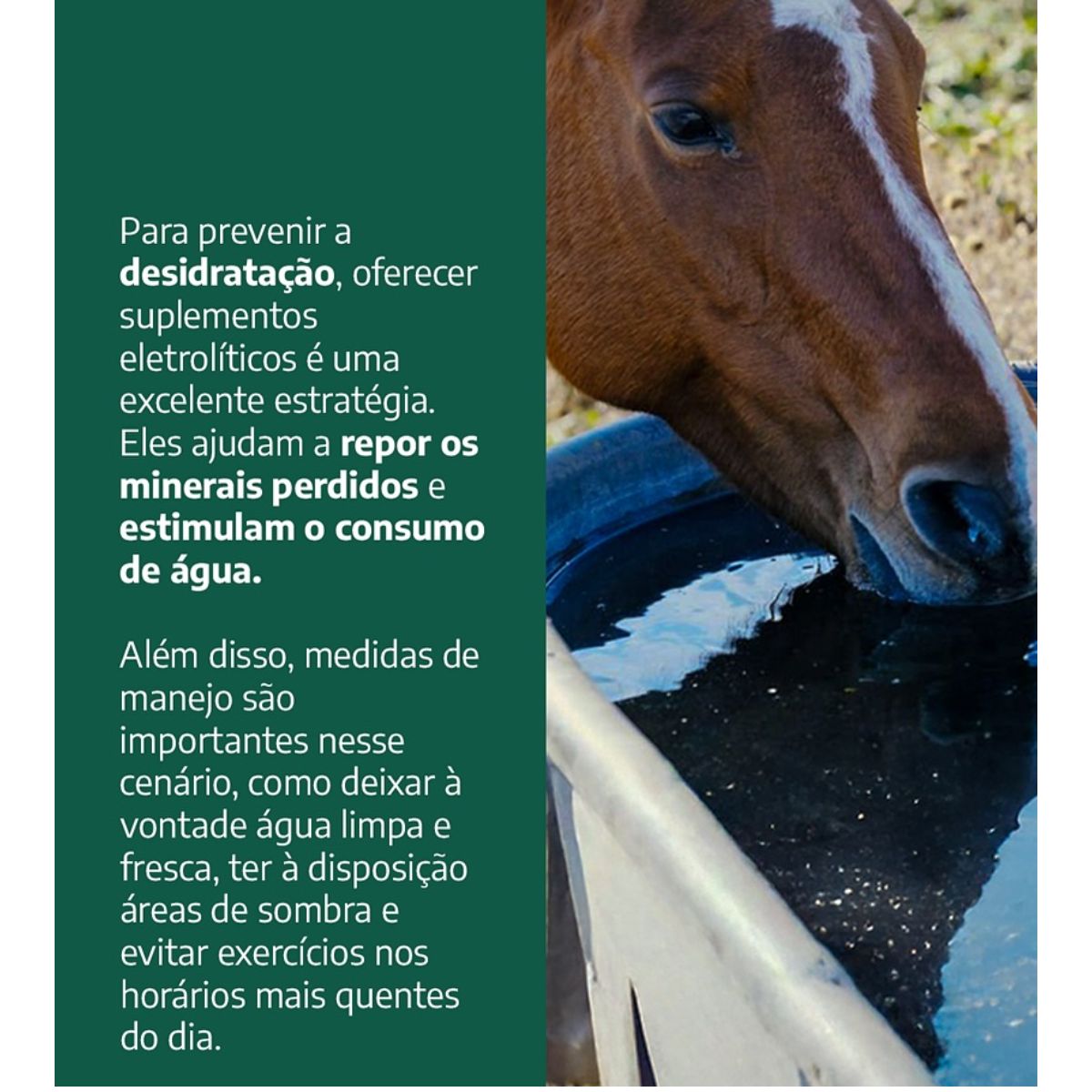 Equinos: Diluir 50g do pó em 10 litros de água limpa e fresca. Oferecer após atividade física ou conforme orientação veterinária.