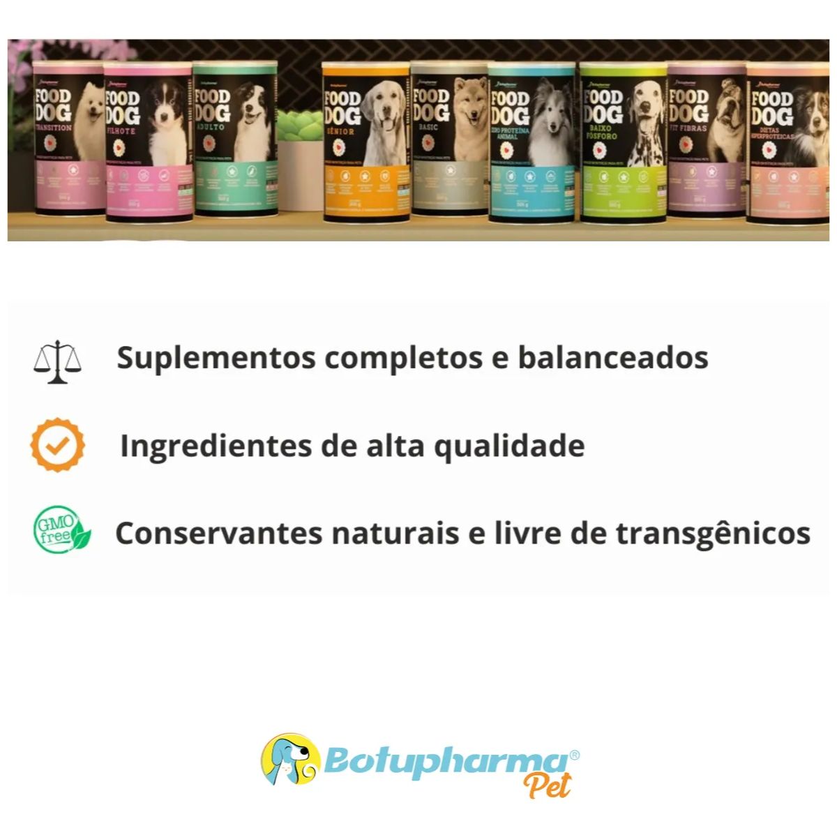 A Botupharma e sinonimo de qualidade e confianca no mercado veterinario brasileiro. Com rigoroso controle de qualidade e formulacoes desenvolvidas por medicos veterinarios e nutricionistas especializados, o Food Dog garante o melhor para seu companheiro.