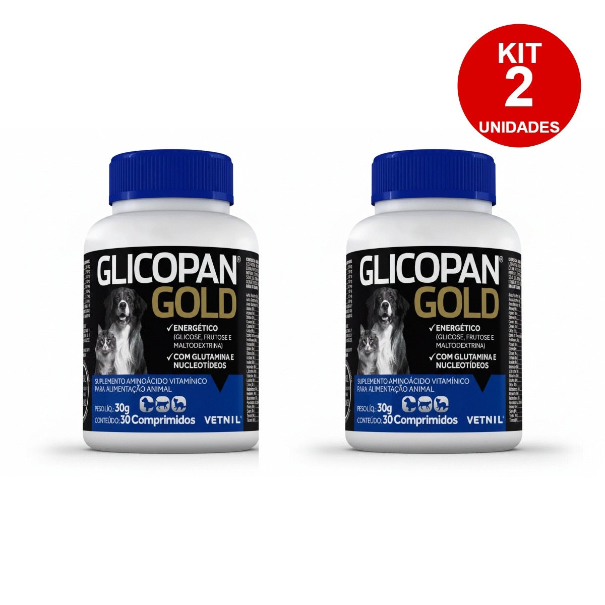 KIT 2 GLICOPAN GOLD 30 COMPRIMIDOS – SUPLEMENTO VITAMÍNICO PARA CÃES E GATOS
