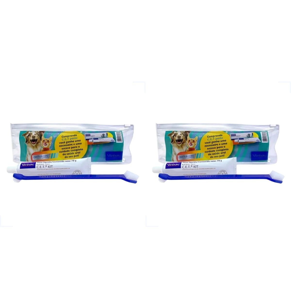 2 Kit Saúde Oral Virbac – C.E.T Pasta Enzimática Sabor Frango com Necessaire e Escova