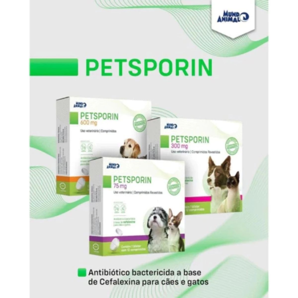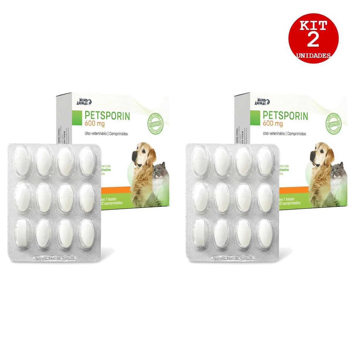 KIT 2 PETSPORIN 600MG – ANTIBIÓTICO MUNDO ANIMAL PARA CÃES E GATOS
