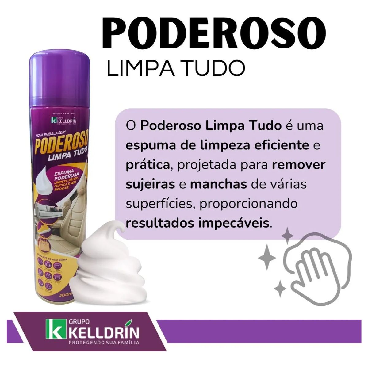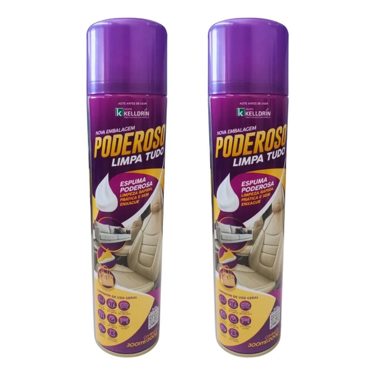 Kit Com 2 Espuma Limpa Tudo Poderoso Kelldrin – Limpeza prática, rápida e sem enxágue