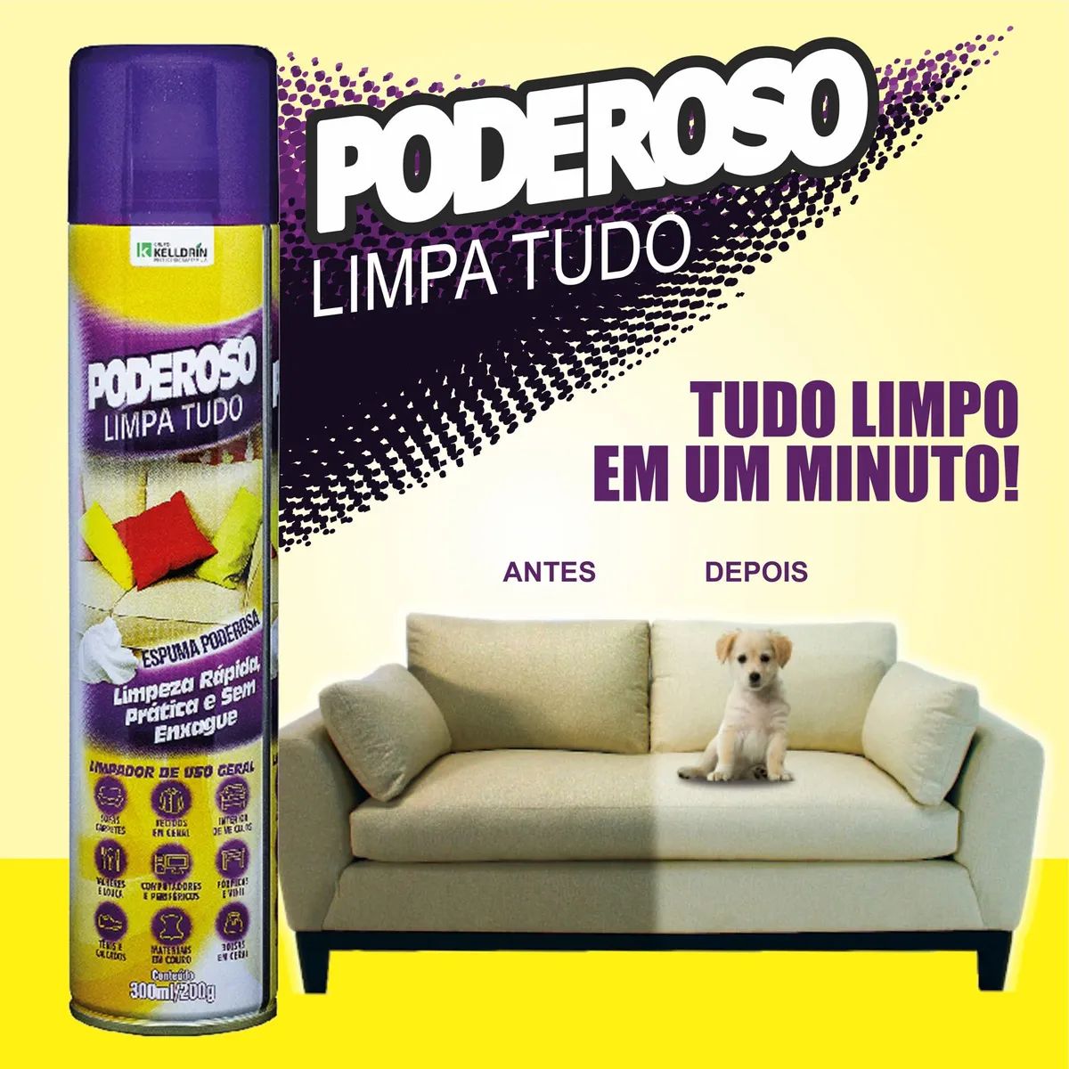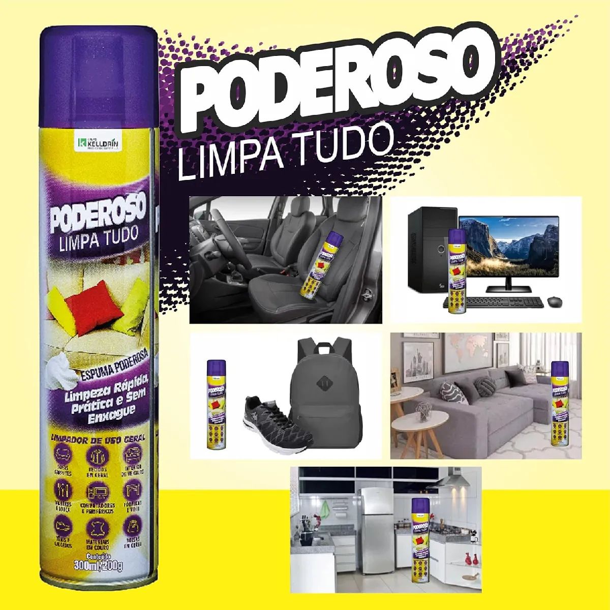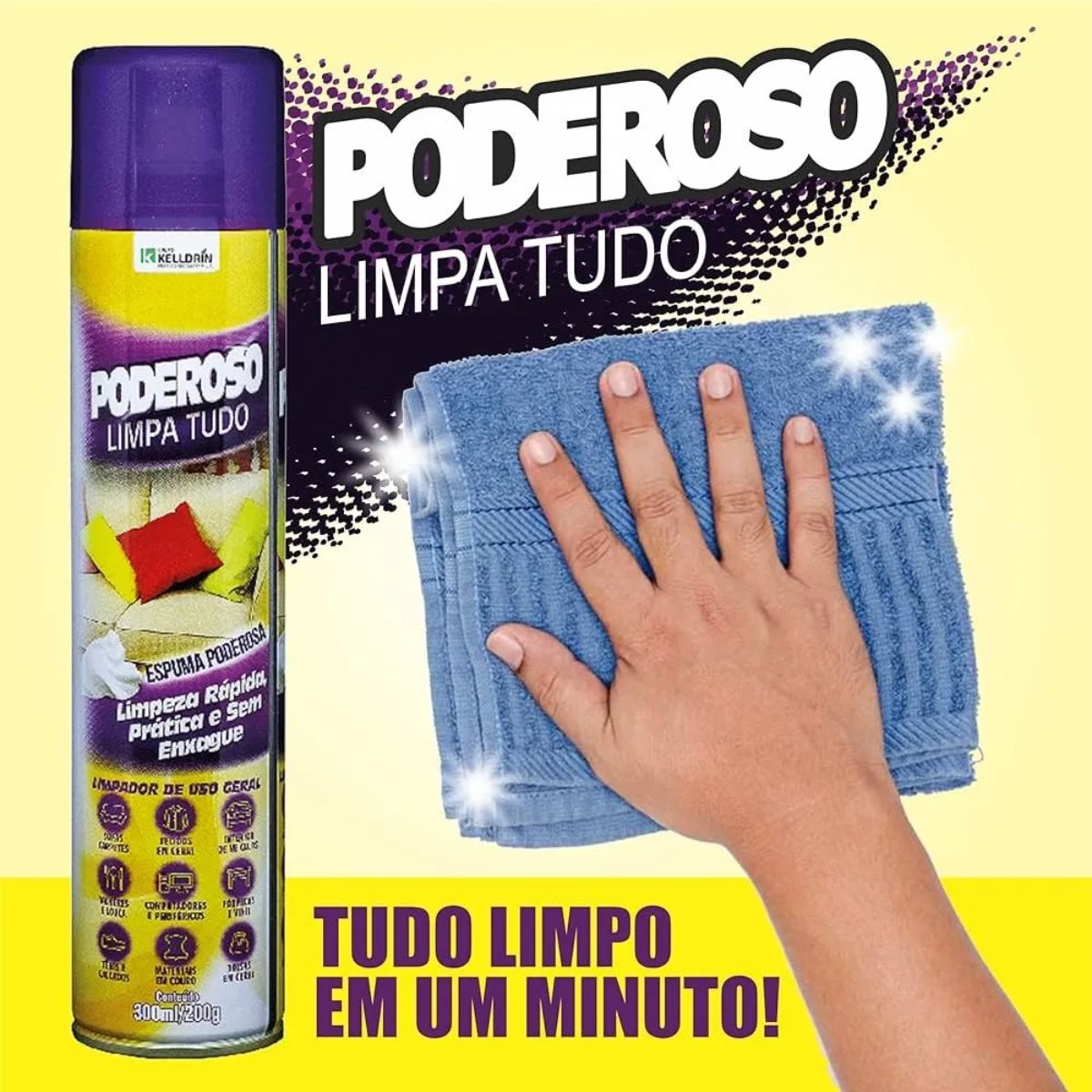 Chega de complicação na hora de limpar! Com a Espuma Limpa Tudo Poderoso Kelldrin, você remove a sujeira com facilidade, sem precisar de enxágue e com resultados surpreendentes. É a solução ideal para quem busca praticidade sem abrir mão da eficiência.