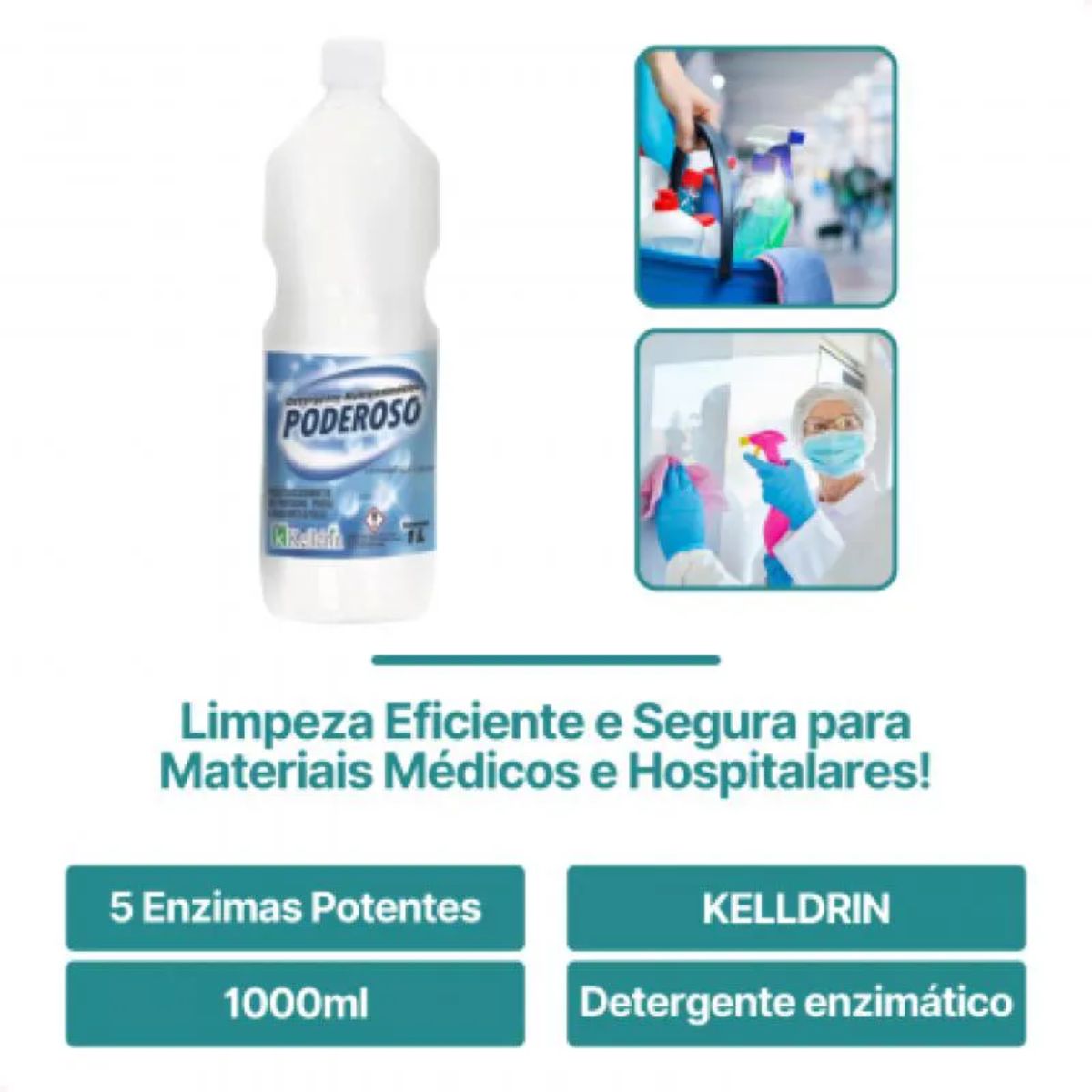 Eficaz na remoção de resíduos biológicos e orgânicos