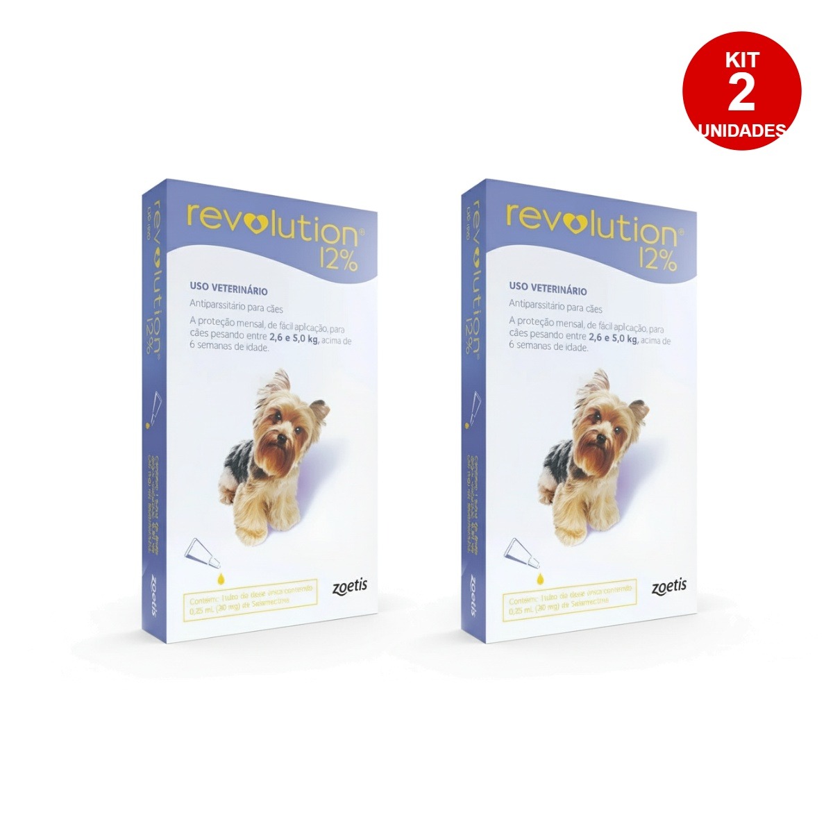 Kit 2 Revolution 12% 0.25ml (30mg) 1 Pipeta Para Cães 2,6kg A 5kg – Zoetis