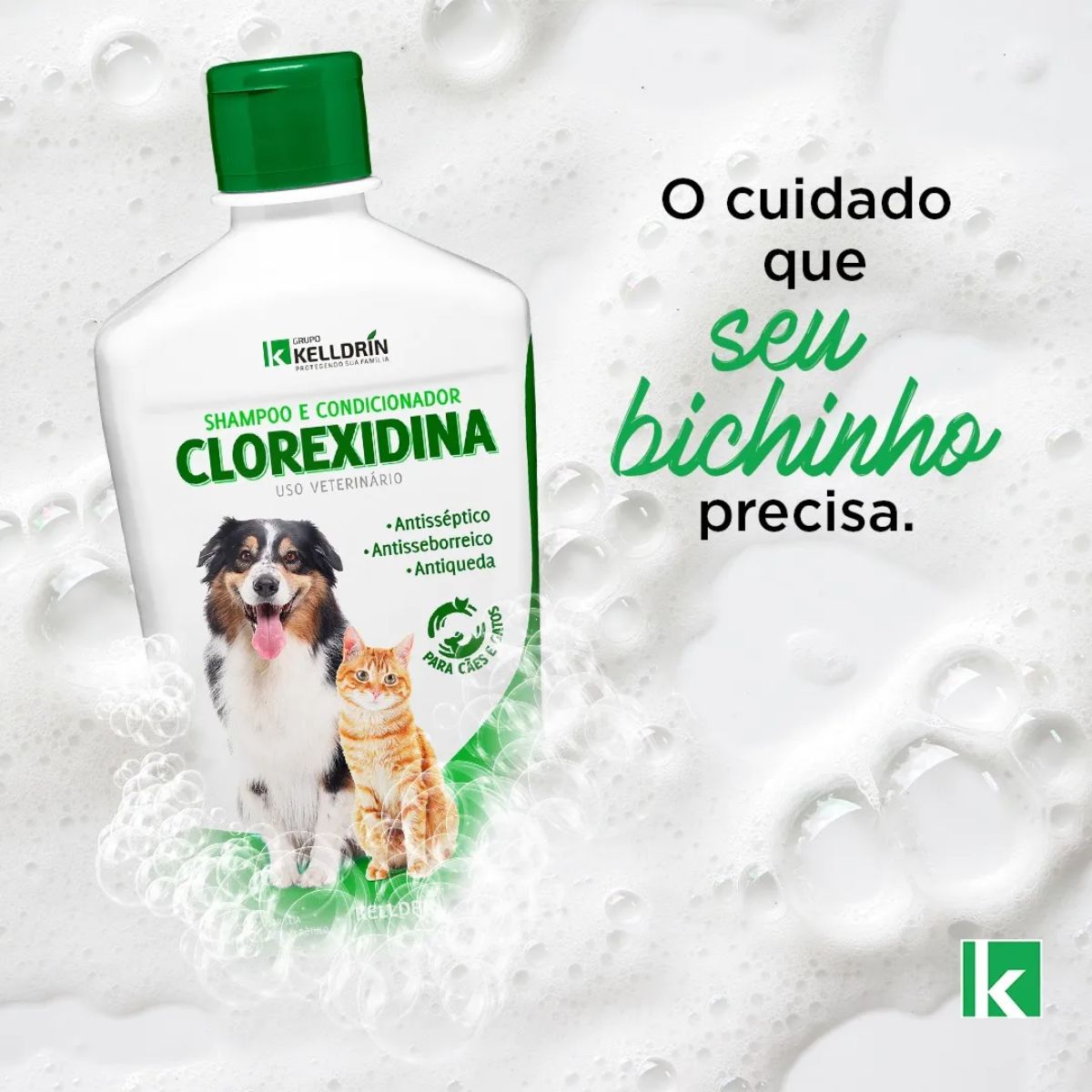 INVISTA NA SAÚDE E BELEZA DO SEU PET COM QUALIDADE PROFISSIONAL. ADQUIRA JÁ O SHAMPOO E CONDICIONADOR CLOREXIDINA KELLDRIN NA GRAND MAGASIN!