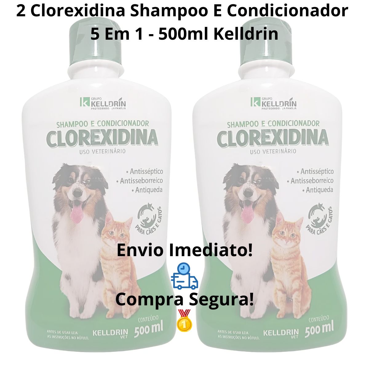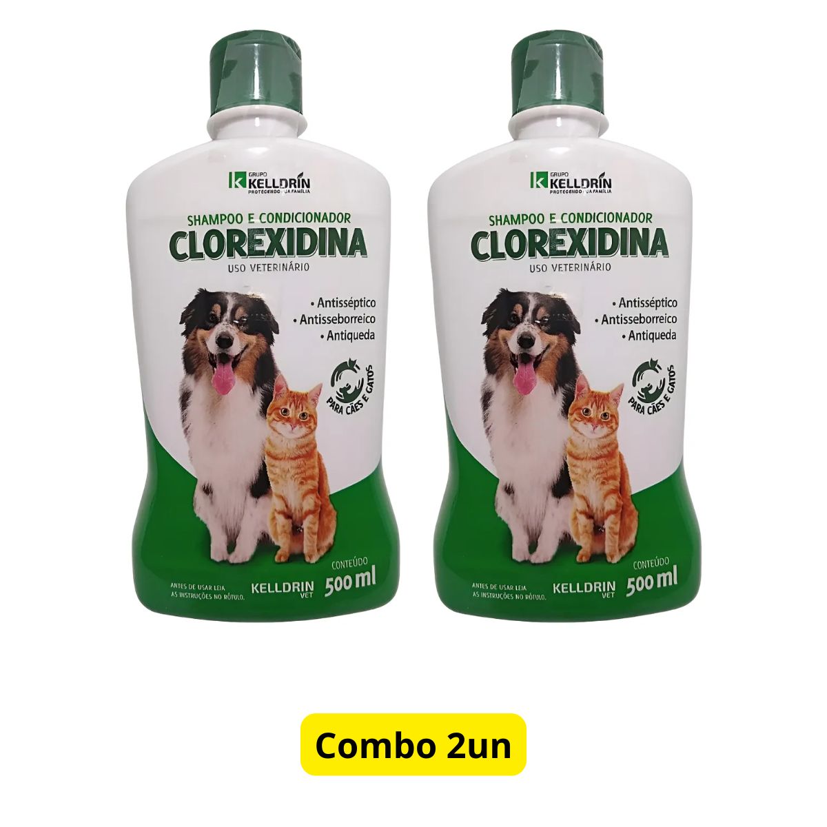 2 Unidades SHAMPOO E CONDICIONADOR CLOREXIDINA 500ML – KELLDRIN