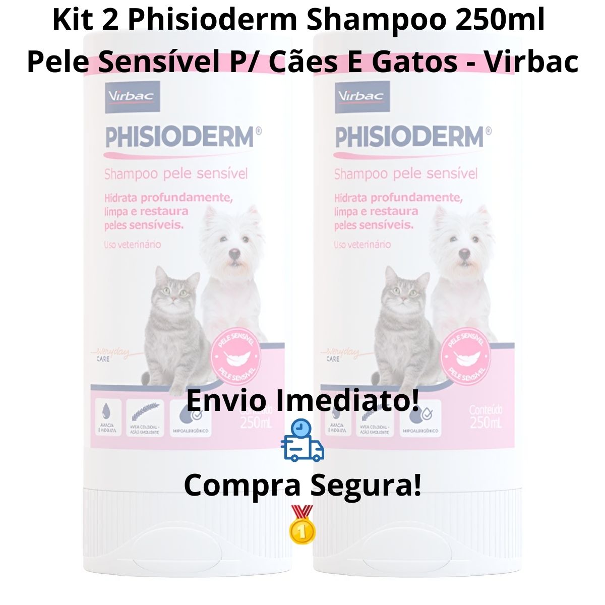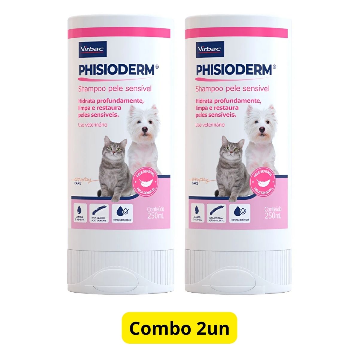 Grand Magasin Apresenta: Kit 2 Phisioderm Shampoo Pele Sensível 250ml Para Cães E Gatos – Virbac