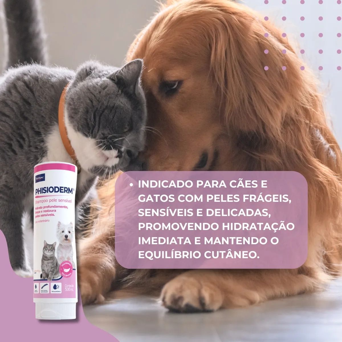 Invista na saúde e no conforto do seu pet com o Phisioderm Shampoo Pele Sensível da Virbac.