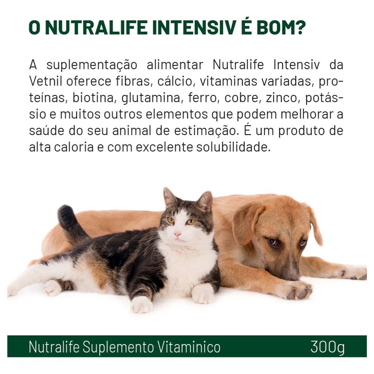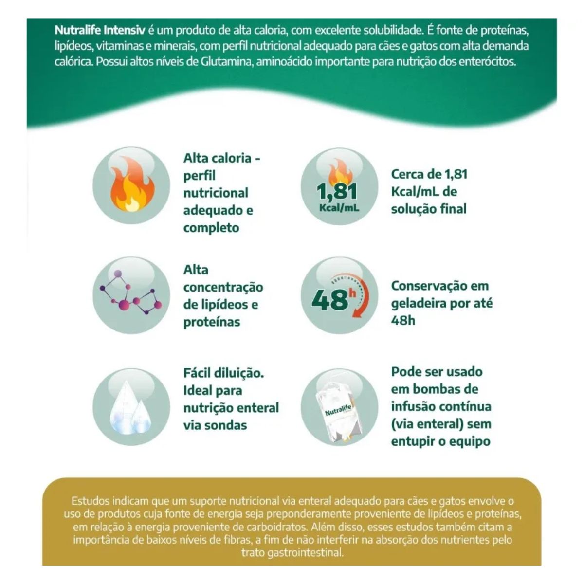 Quando seu pet precisa de um reforço nutricional imediato, Nutralife Intensiv é a escolha ideal. Suplemento com alto teor calórico, é indicado para cães e gatos em estado nutricional inadequado, oferecendo suporte eficaz em situações críticas, como recuperação pós-cirúrgica, doenças, envelhecimento, gestação ou lactação.