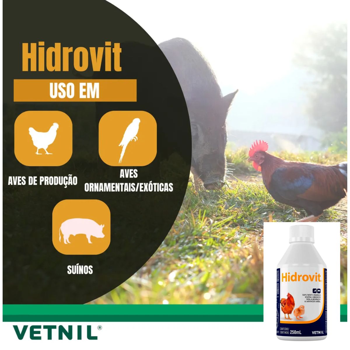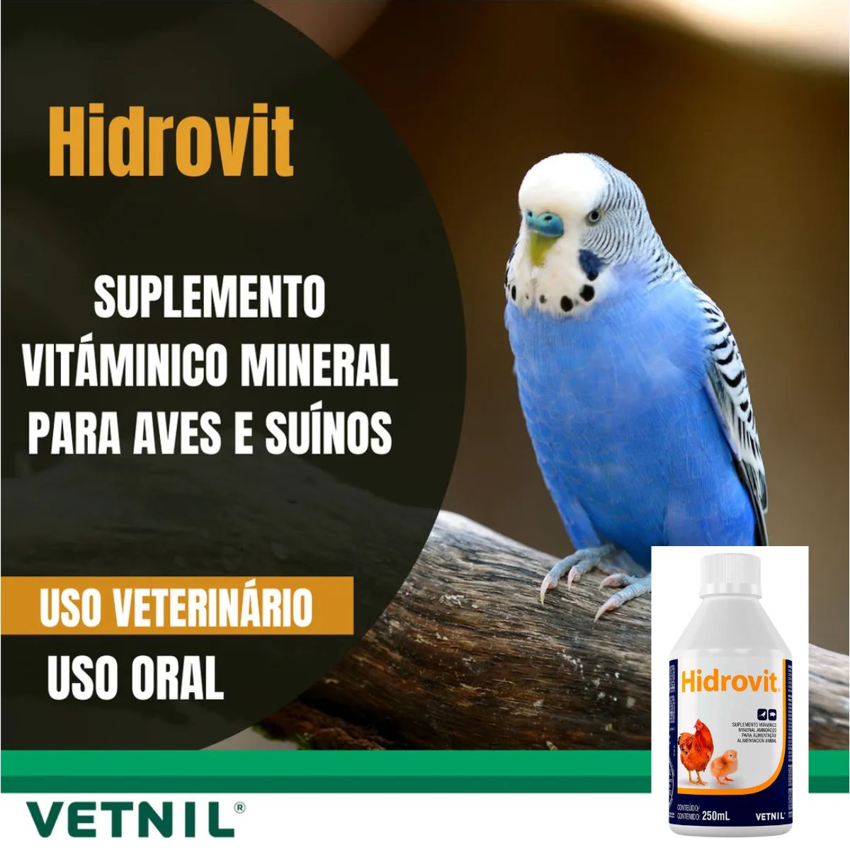 2 Unidades HIDROVIT 250ML – SUPLEMENTO VITAMÍNICO PARA AVES – VETNIL