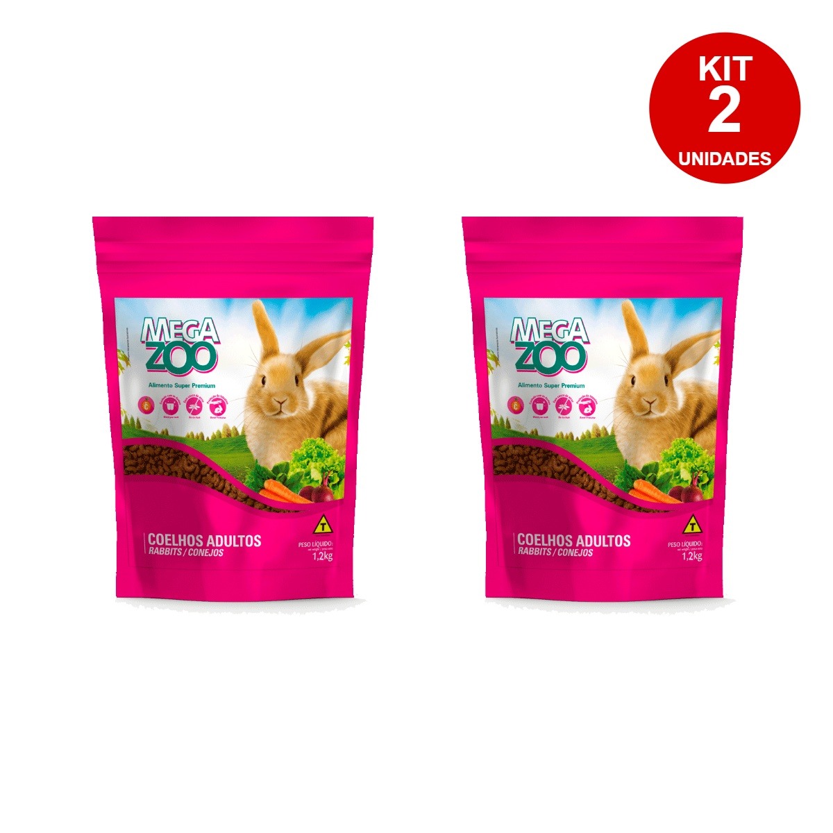 2 Unidades Ração Megazoo Extrusada para Coelhos Ornamentais 1,2kg