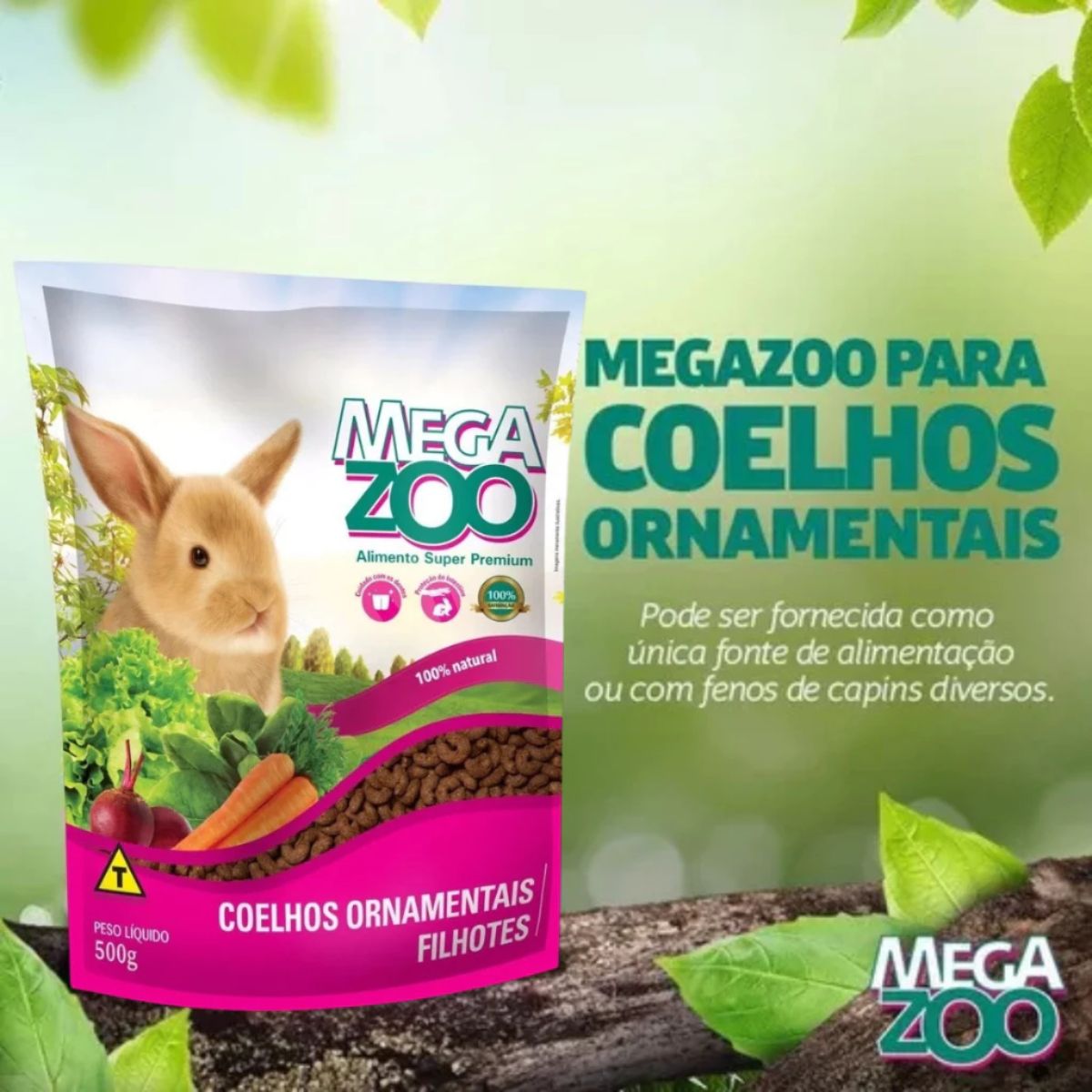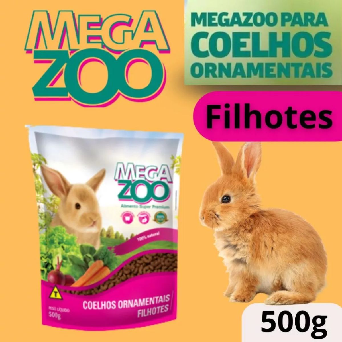 2 Unidades Ração Megazoo Coelho Filhote 500g – Crescimento Saudável