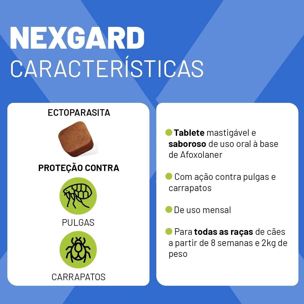 Garanta agora o bem-estar do seu pet com a proteção confiável do Nexgard. Livre seu cão das pulgas e carrapatos com rapidez, segurança e sabor.