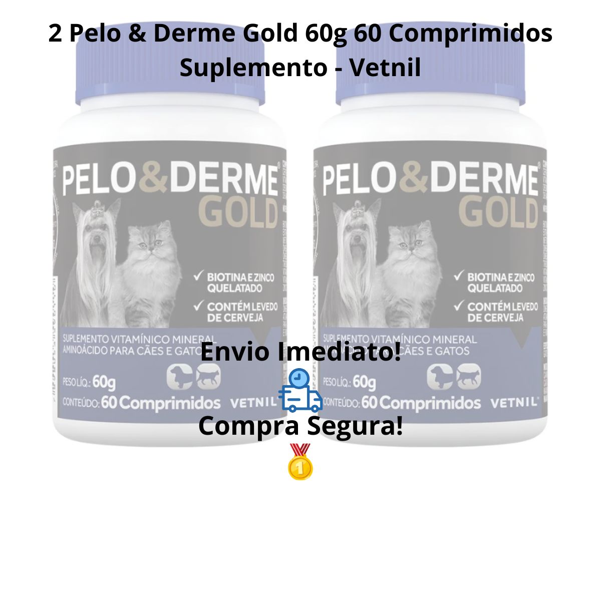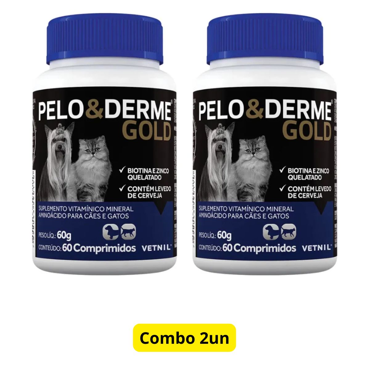 Pelo e Derme Gold é o suplemento de alta performance desenvolvido pela Vetnil, referência nacional em saúde animal com mais de 35 anos de tradição no mercado veterinário brasileiro. Esta formulação premium combina nutrientes essenciais em doses terapêuticas para regeneração completa da pele e pelagem de cães e gatos.
