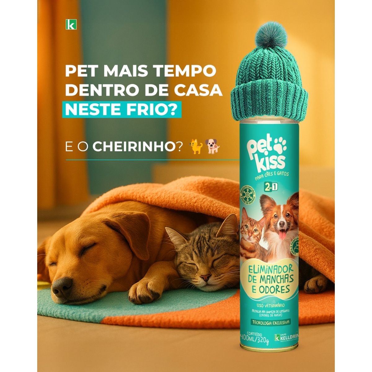 Desenvolvido pela Kelldrin, referência nacional em produtos veterinários e pet care com mais de 25 anos de experiência, o Pet Kiss Eliminador de Mancha e Odor 2 em 1 representa a tecnologia mais avançada para higienização de ambientes com animais de estimação.