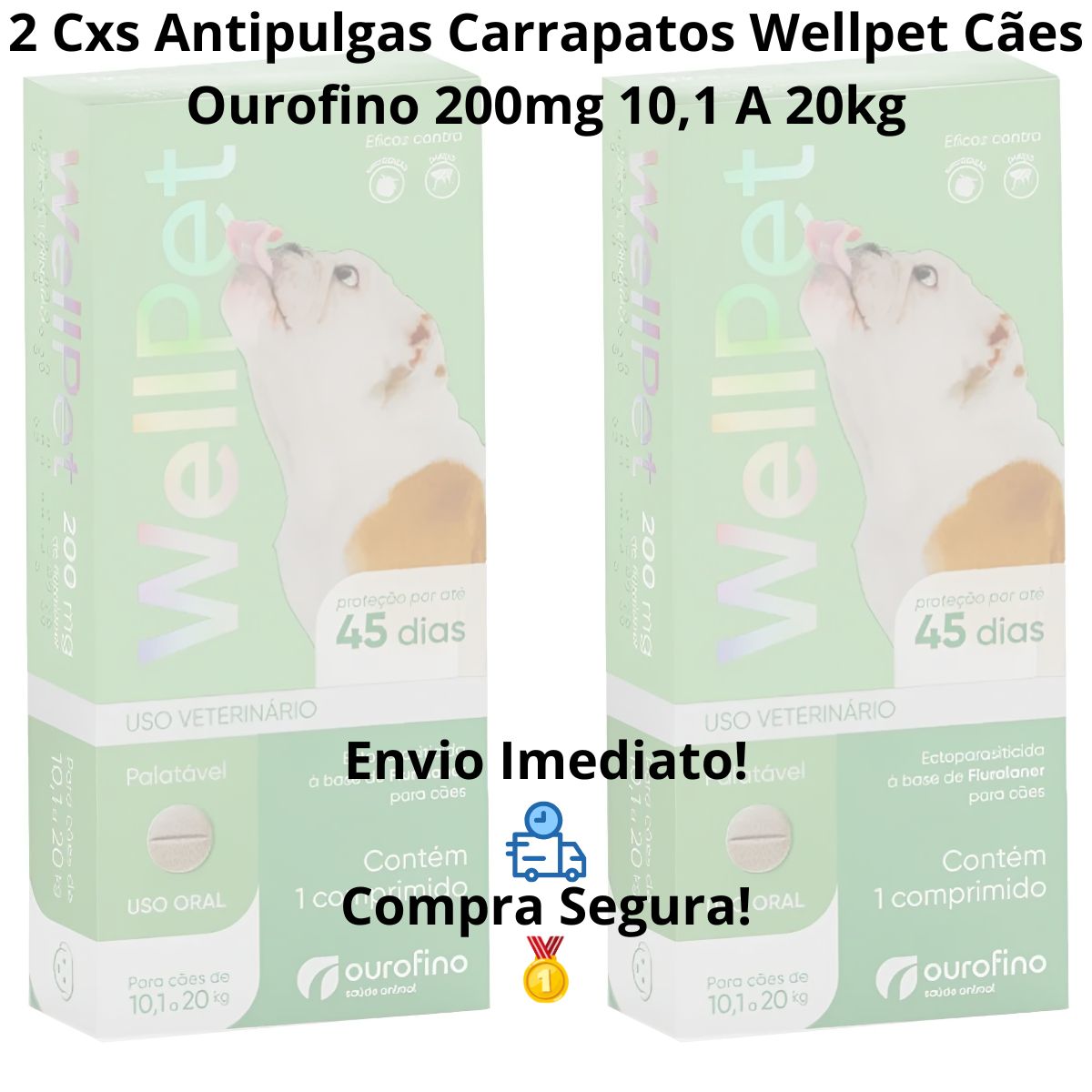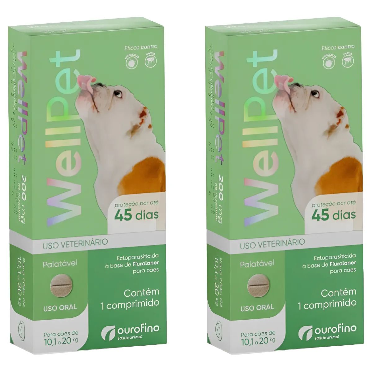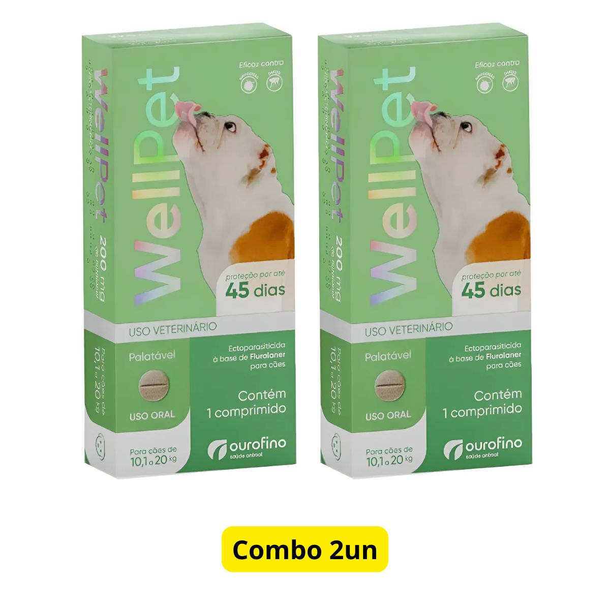 2 Unidades WELLPET 200MG – ANTIPULGAS E CARRAPATOS PARA CÃES DE 10,1 A 20KG – OUROFINO