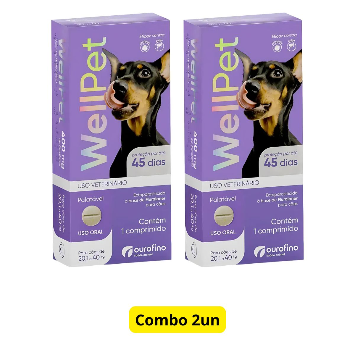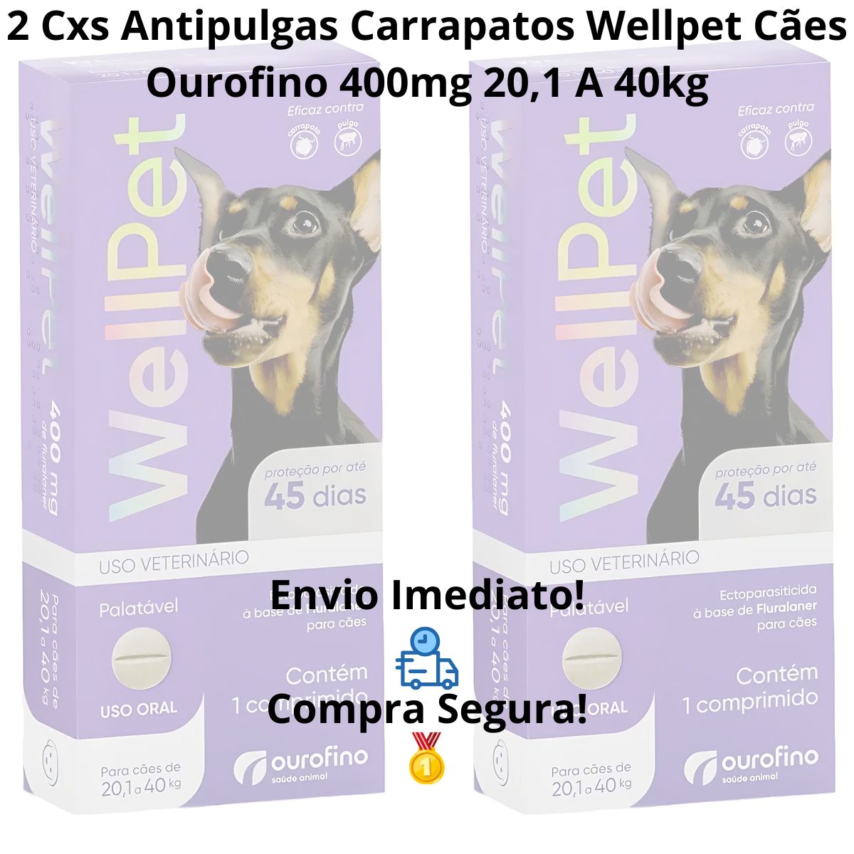 2 Unidades WELLPET 400MG – ANTIPULGAS E CARRAPATOS PARA CÃES DE 20,1 A 40KG – OUROFINO
