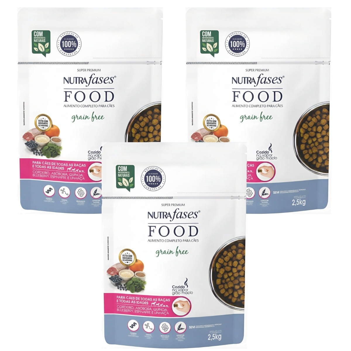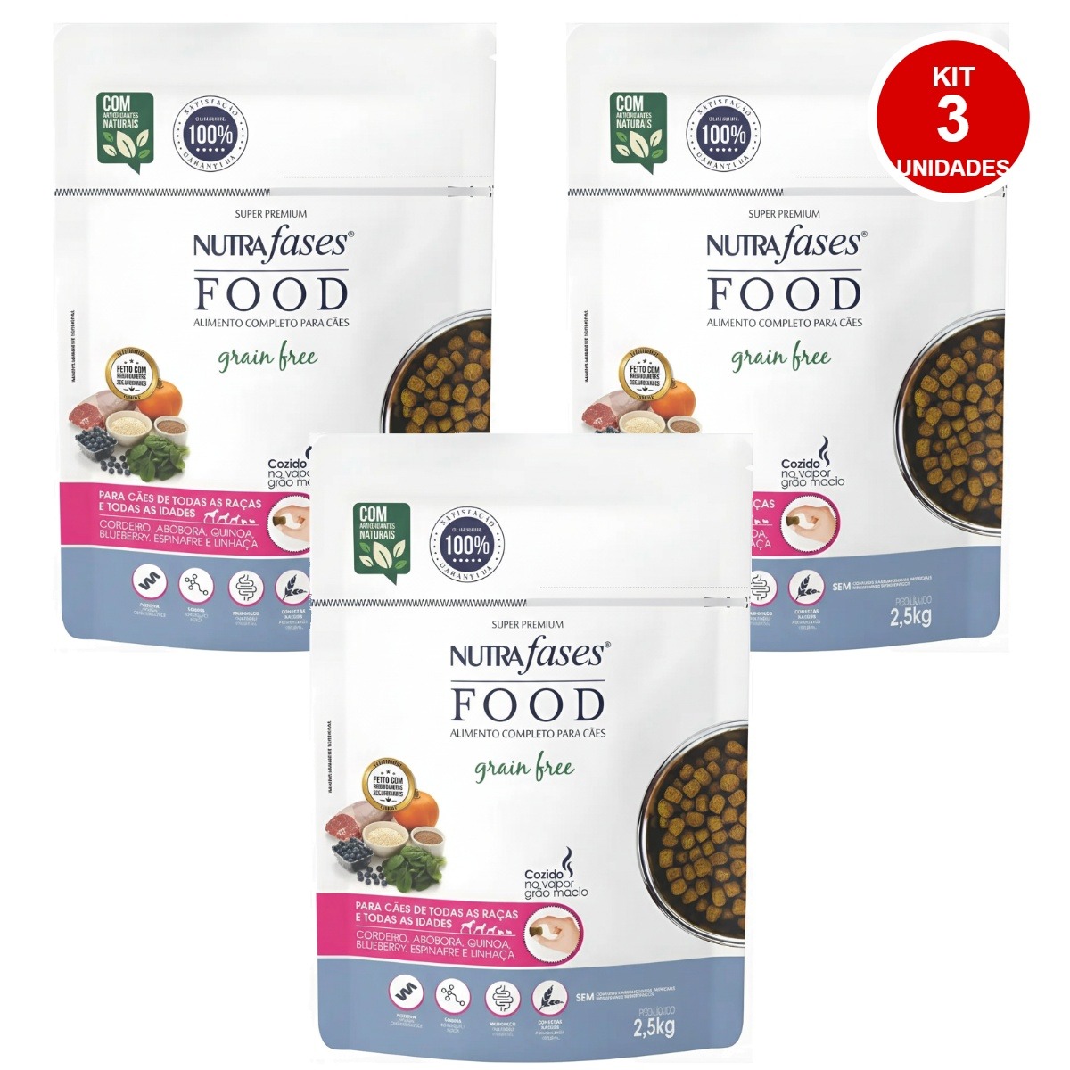 KIT 3 NUTRAFASES FOOD – RAÇÃO COZIDA NO VAPOR GRAIN FREE CORDEIRO 2,5KG