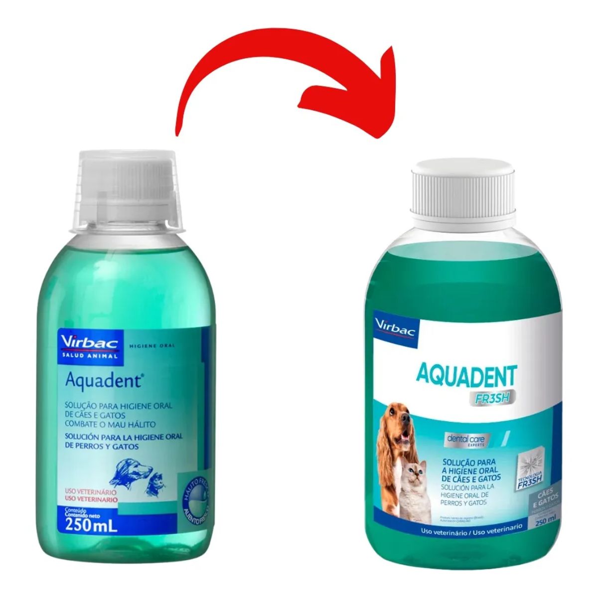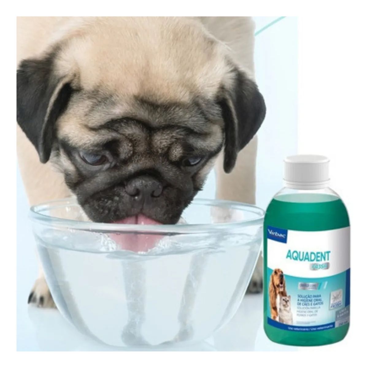 Apresentamos o Aquadent Fresh 250ml da Virbac, a solução inovadora para a higiene oral diária de cães e gatos, agora disponível na Grand Magasin. Desenvolvido pela renomada Virbac, líder em saúde animal, este aditivo para água potável é a chave para um hálito fresco e dentes saudáveis para seus pets.
