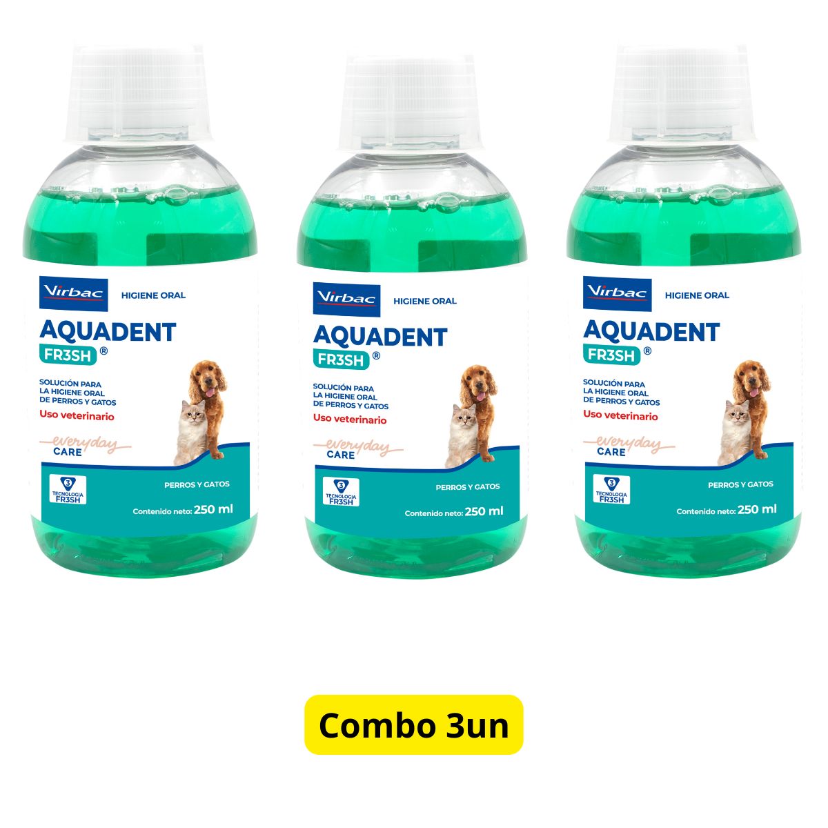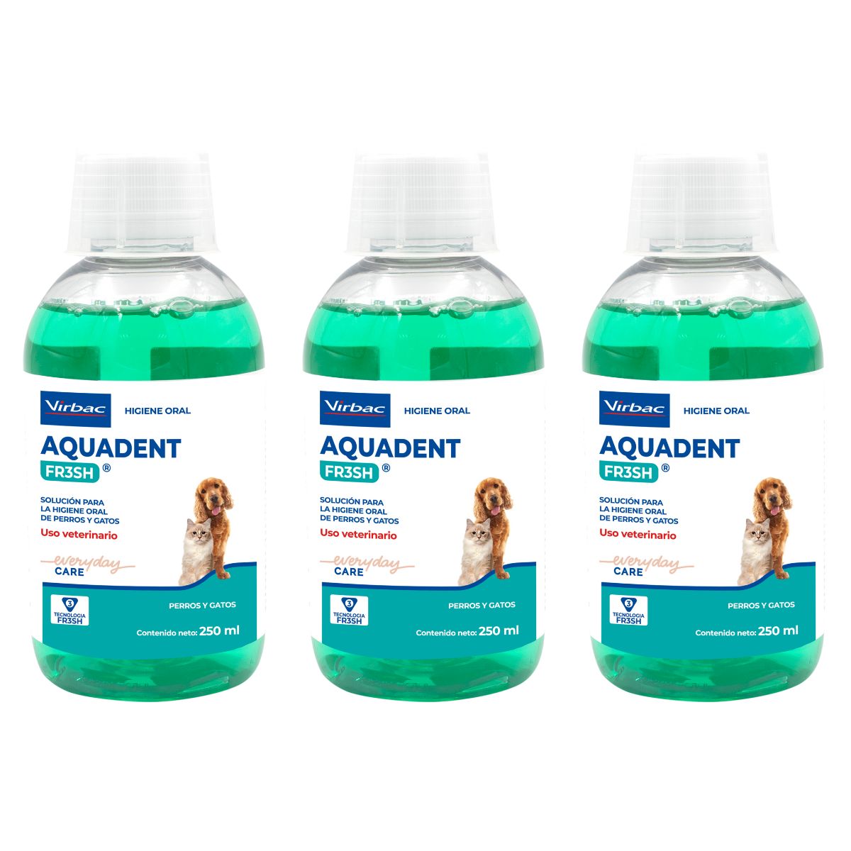 Kit 3 Aquadent Fresh 250ml – Solução Para Higiene Oral De Cães E Gatos – Virbac