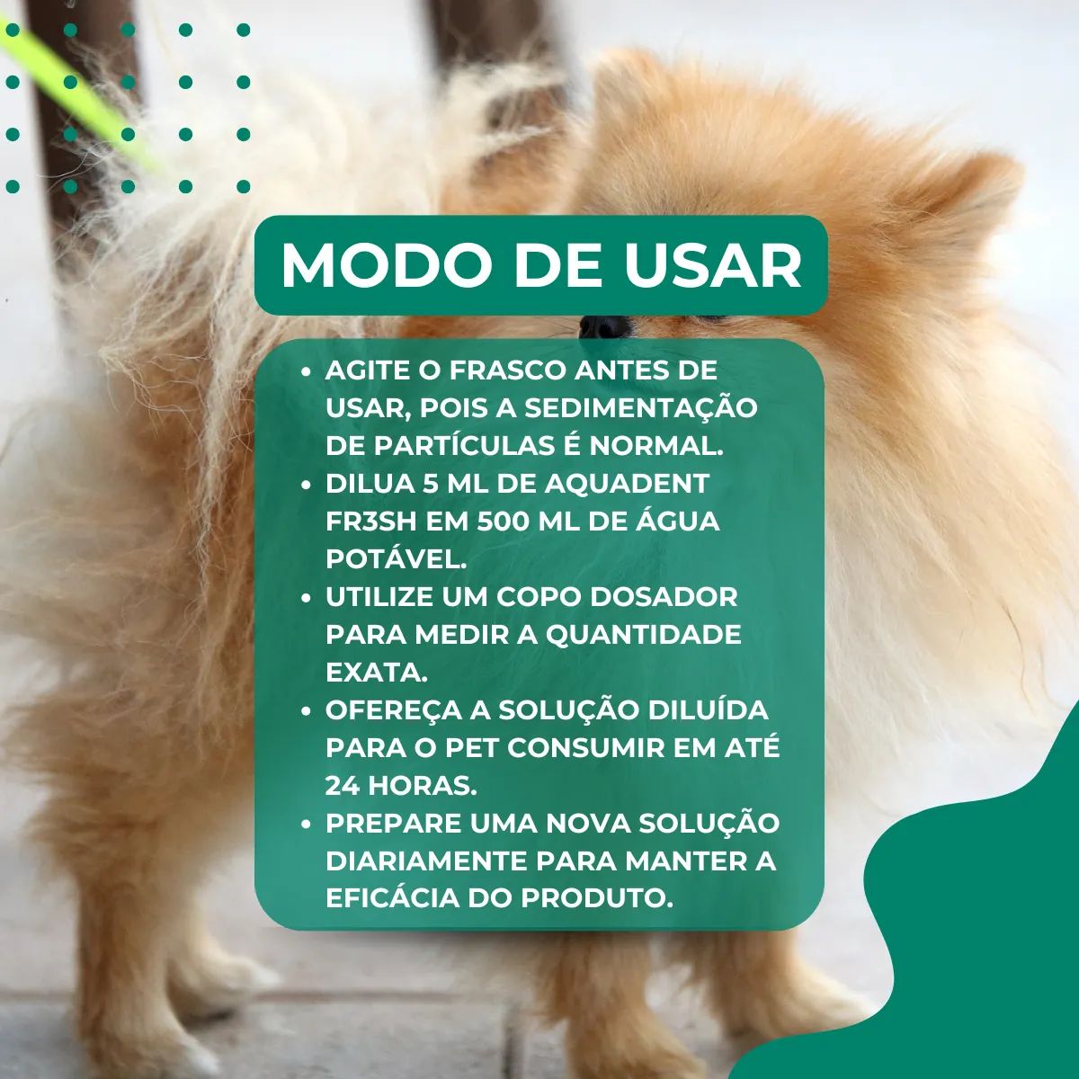 • Solução para higiene oral diária, adicionada à água de beber.