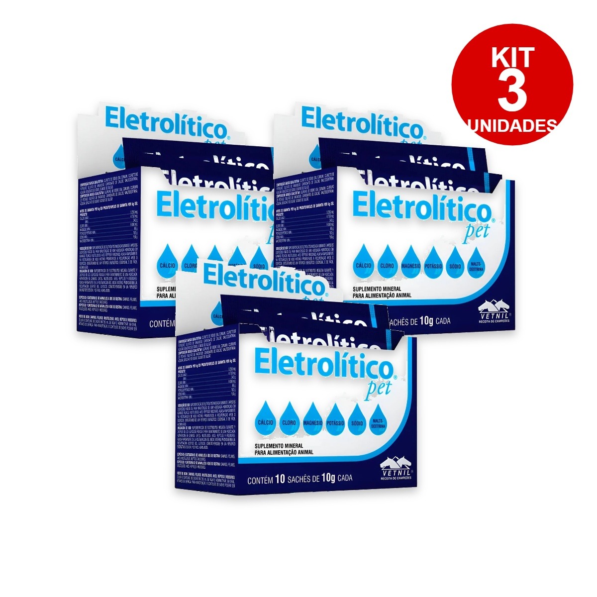 3 Caixas ELETROLÍTICO PET VETNIL – CAIXA COM 10 SACHÊS DE 10G