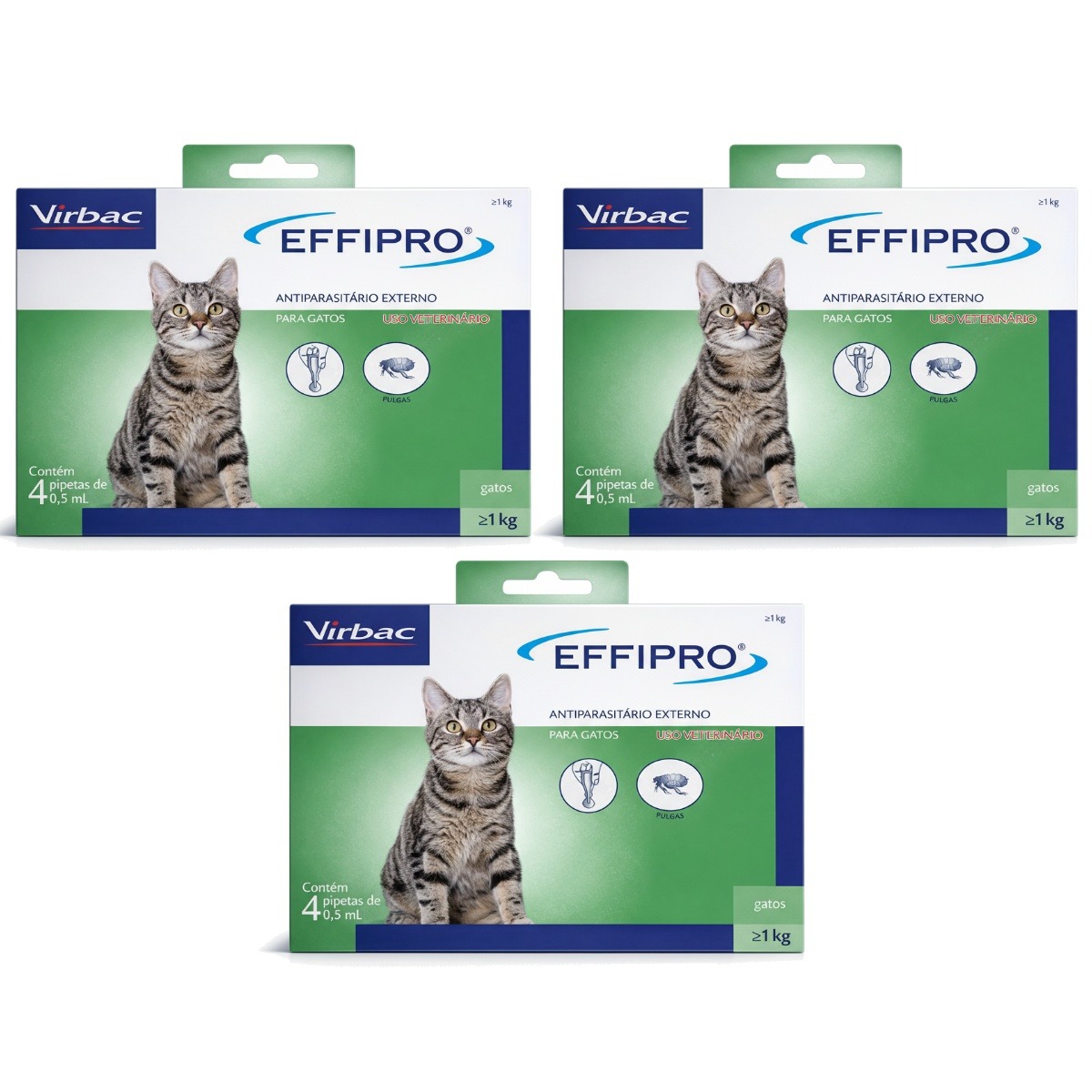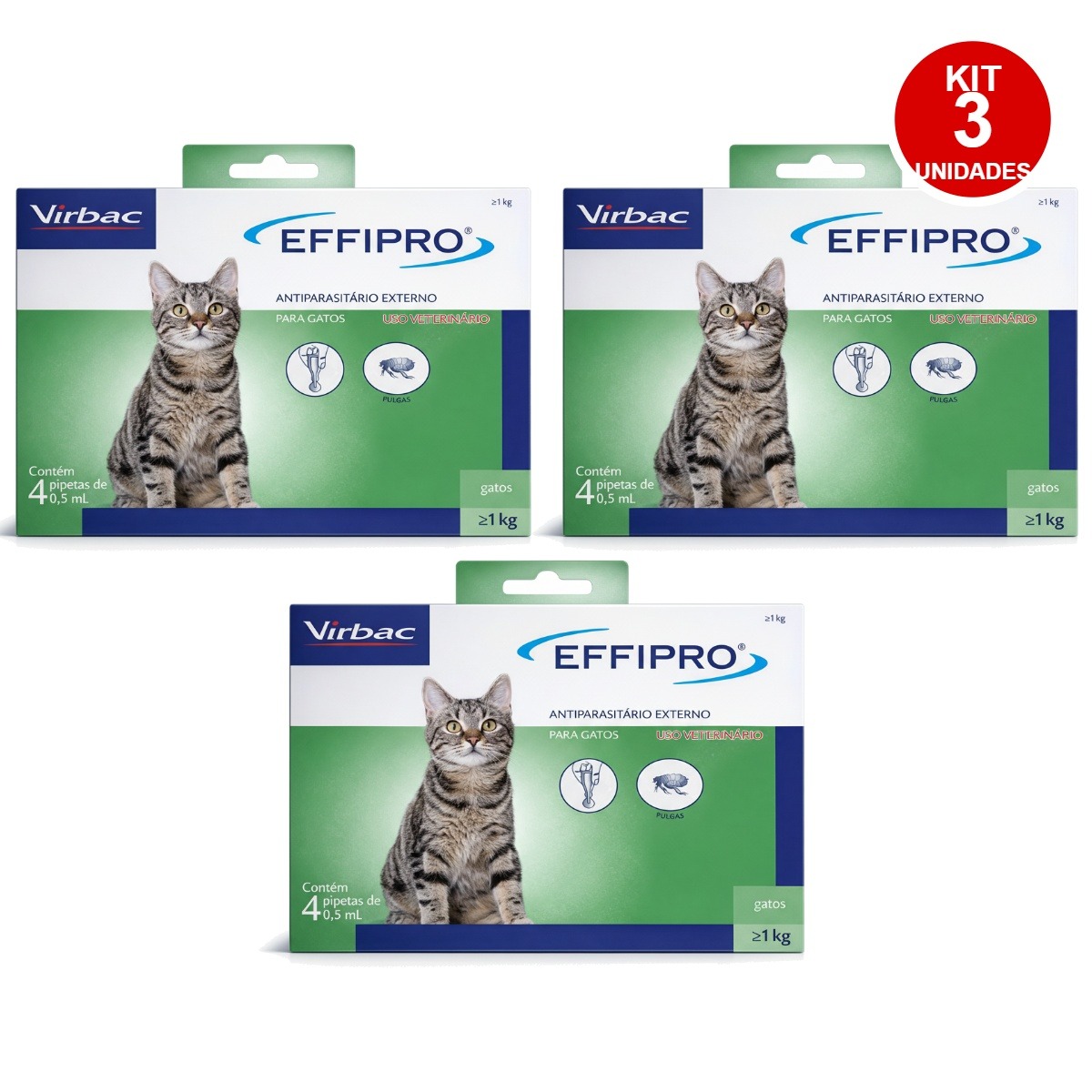 KIT 3 EFFIPRO VIRBAC – PROTEÇÃO COMPLETA CONTRA PULGAS E CARRAPATOS PARA GATOS
