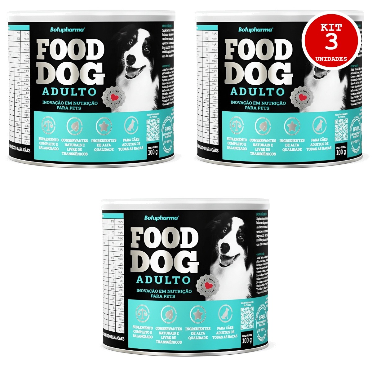 KIT 3 FOOD DOG 100G ADULTO MANUTENCAO – SUPLEMENTO BALANCEADO BOTUPHARMA