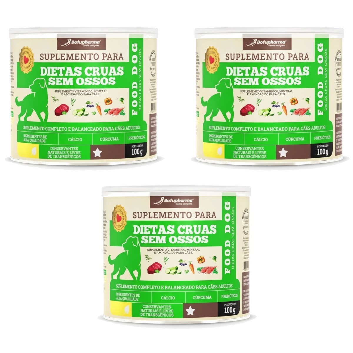 KIT 3 BOTUPHARMA FOOD DOG – SUPLEMENTO PARA DIETAS CRUAS SEM OSSOS 100G