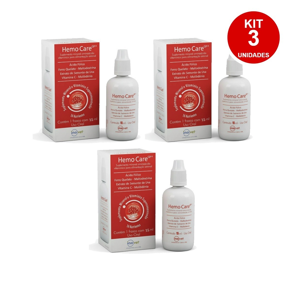 3 Unidades HEMO CARE GP 15ML – SUPLEMENTO MINERAL VITAMÍNICO INOVET