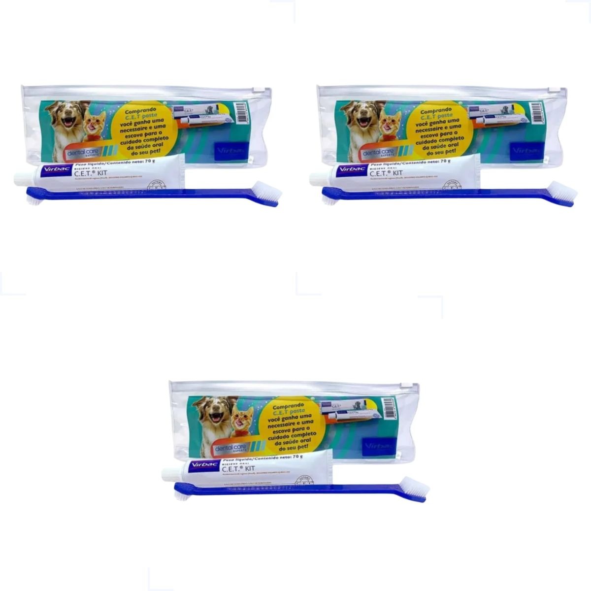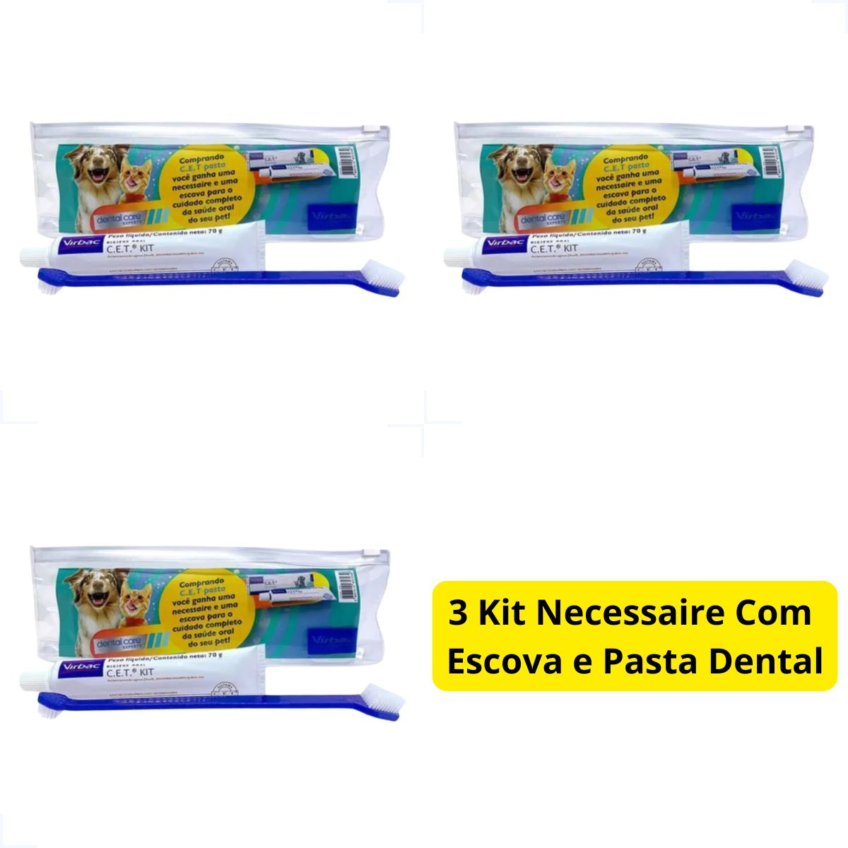 3 Kit Saúde Oral Virbac – C.E.T Pasta Enzimática Sabor Frango com Necessaire e Escova