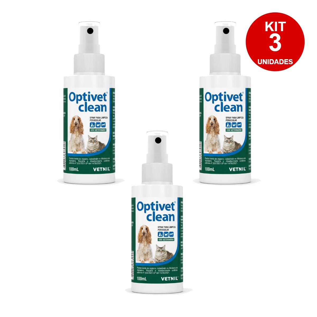 O Optivet Clean é a solução profissional desenvolvida pela Vetnil, líder brasileira em produtos veterinários, para a higiene periocular diária de cães e gatos. Com formulação especial e pH balanceado, este spray remove com eficácia secreções oculares, crostas, sujidades e manchas de lágrima, proporcionando limpeza profunda e segura na região ao redor dos olhos do seu pet.