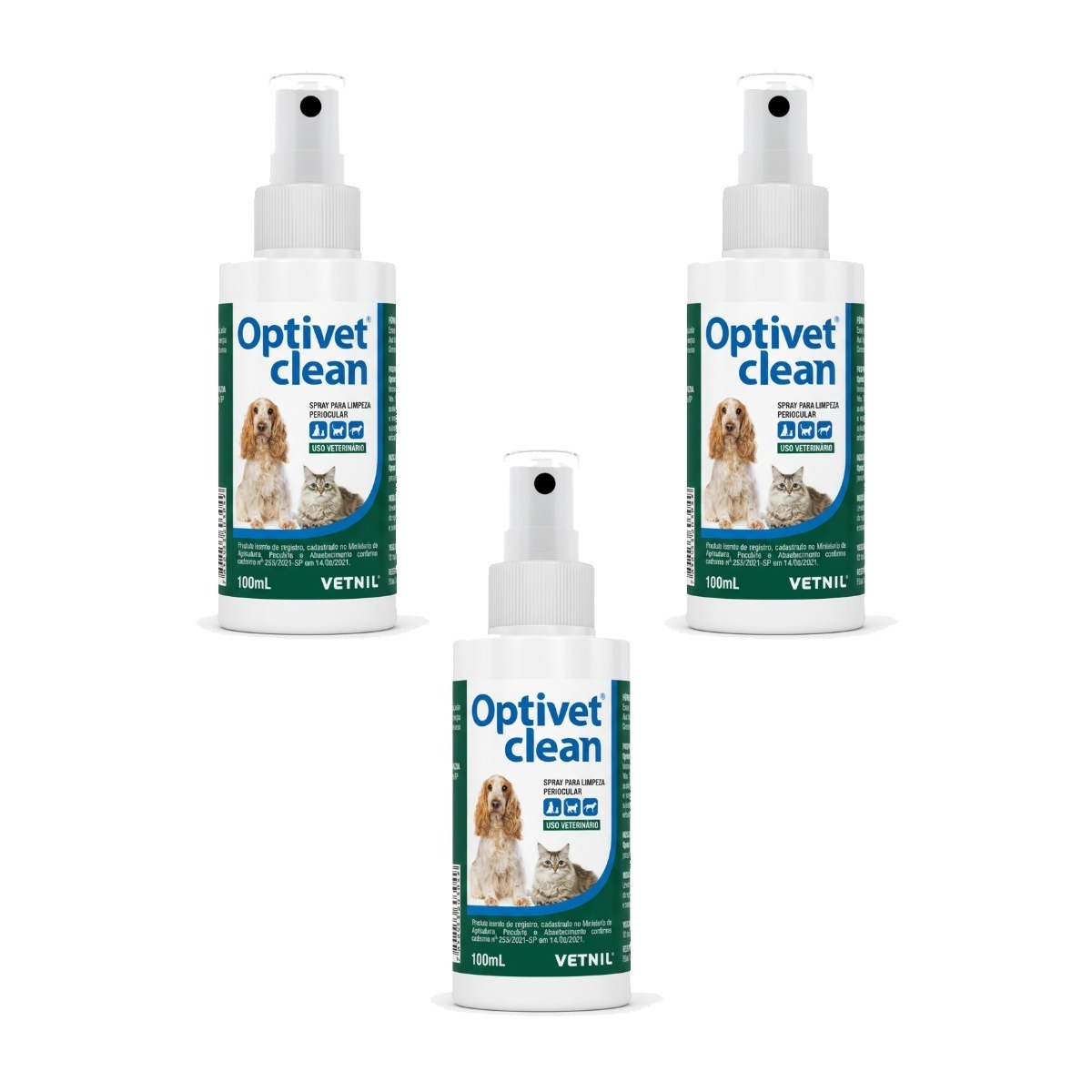 3 Unidades OPTIVET CLEAN 100ML – SPRAY PARA LIMPEZA PERIOCULAR VETNIL