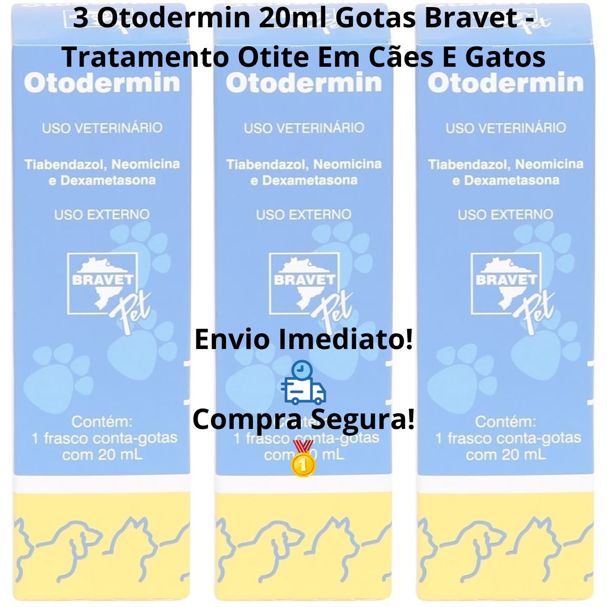 3 OTODERMIN 20ML GOTAS BRAVET – TRATAMENTO DE OTITE EM CÃES E GATOS