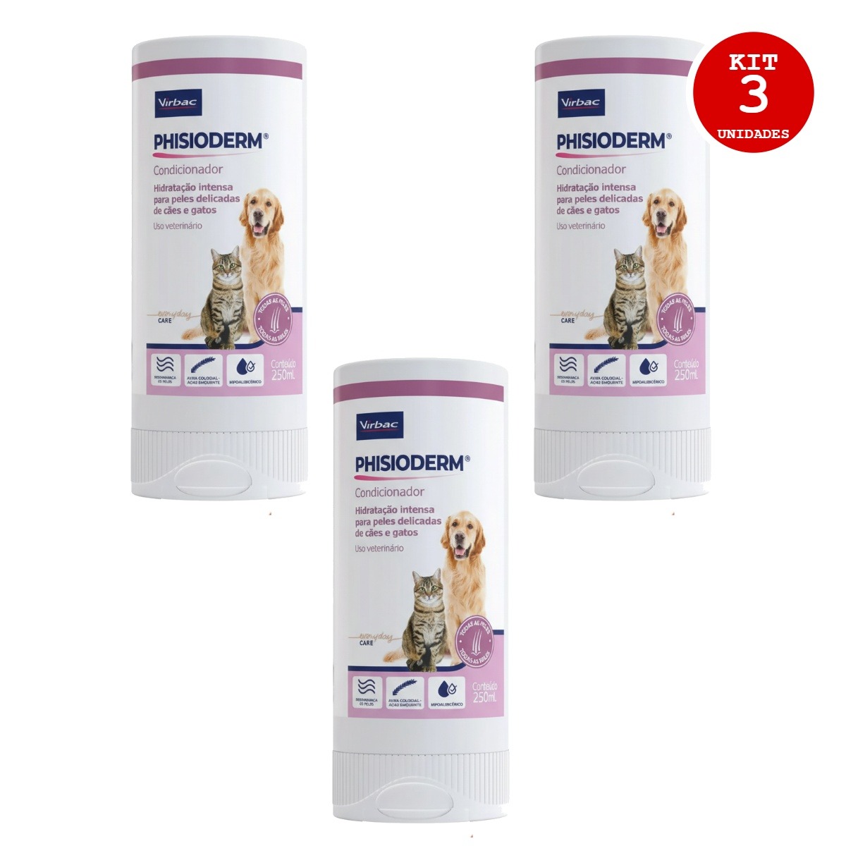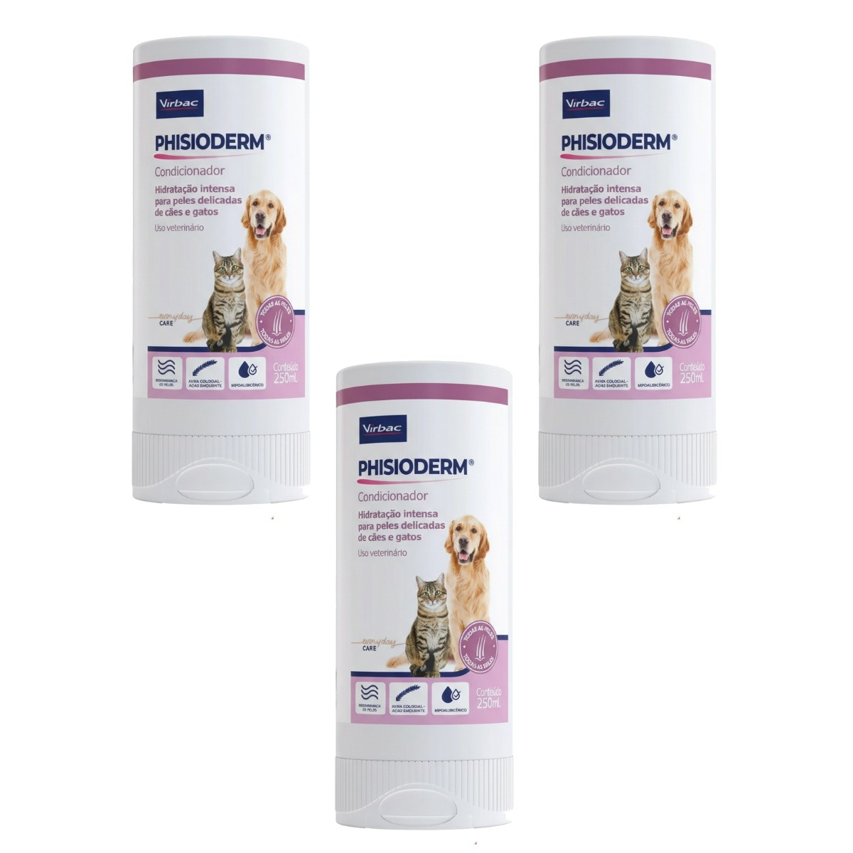 KIT 3 PHISIODERM CONDICIONADOR 250ML VIRBAC – HIDRATAÇÃO PROFUNDA PARA PETS
