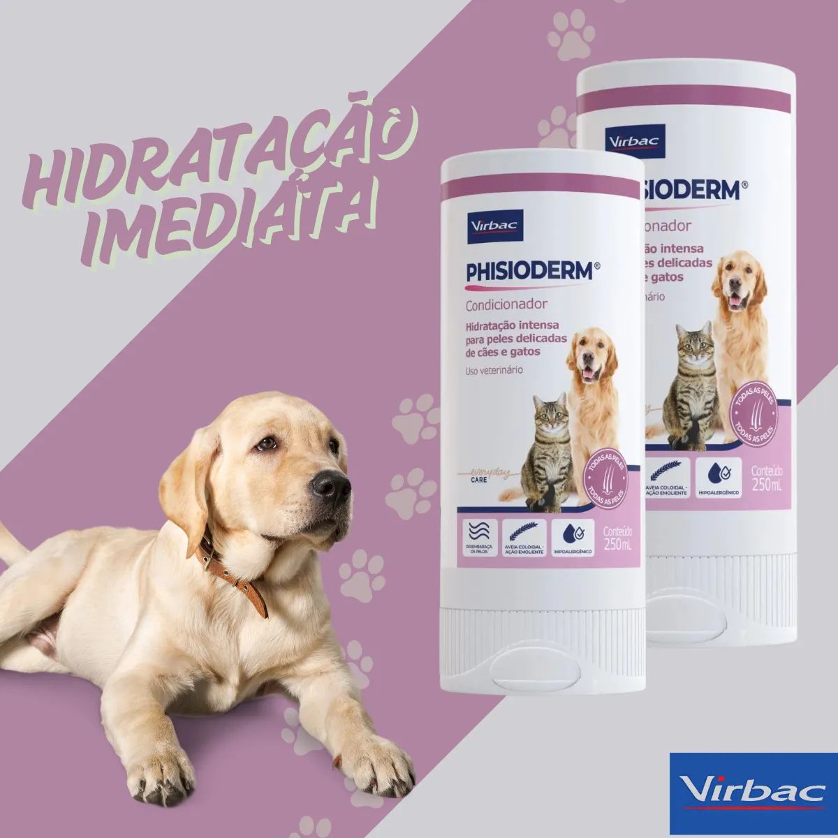 O Phisioderm Condicionador Virbac foi desenvolvido para solucionar os principais problemas de pelagem e pele que afetam cães e gatos. Sua fórmula exclusiva promove hidratação profunda, combatendo o ressecamento causado por banhos frequentes, exposição ao sol, cloro de piscinas e fatores ambientais.