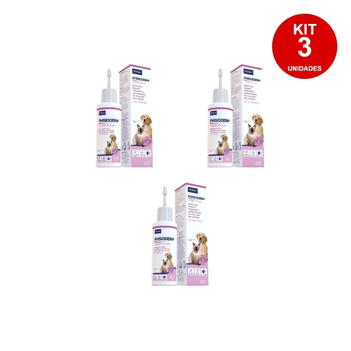 3 Unidades PHISIODERM LIMPADOR AURICULAR 100ML – VIRBAC