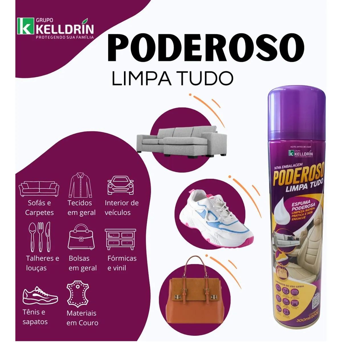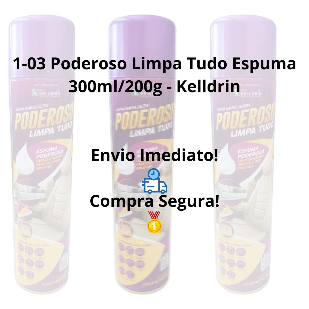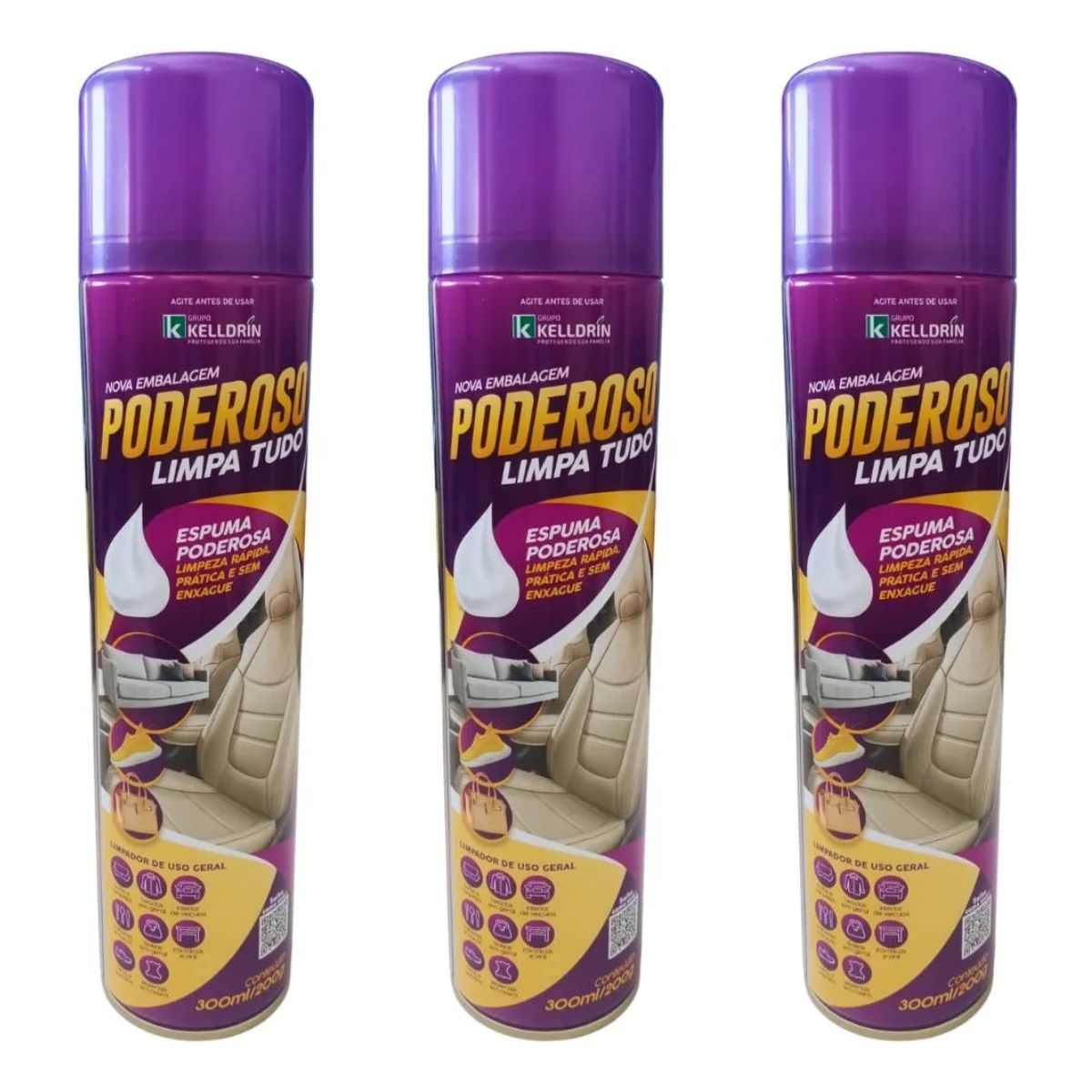 Combo 3 Unidades Espuma Limpa Tudo Poderoso Kelldrin – Limpeza prática, rápida e sem enxágue