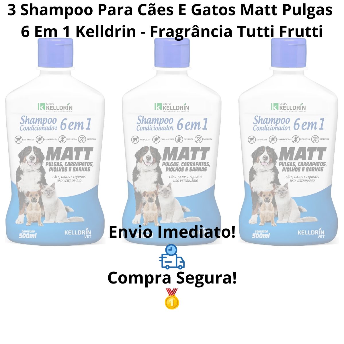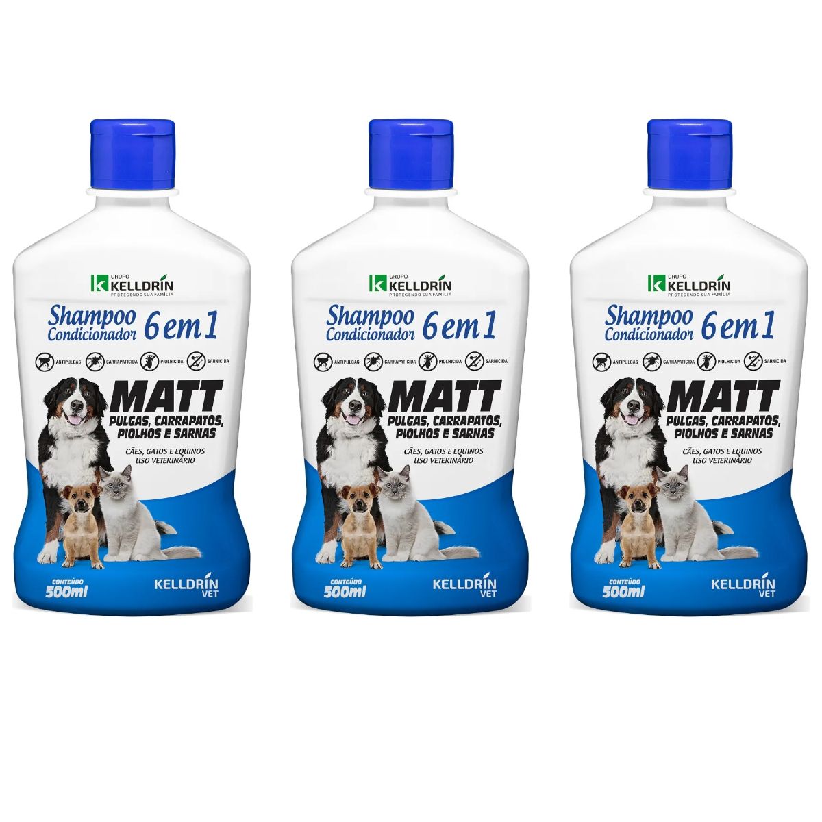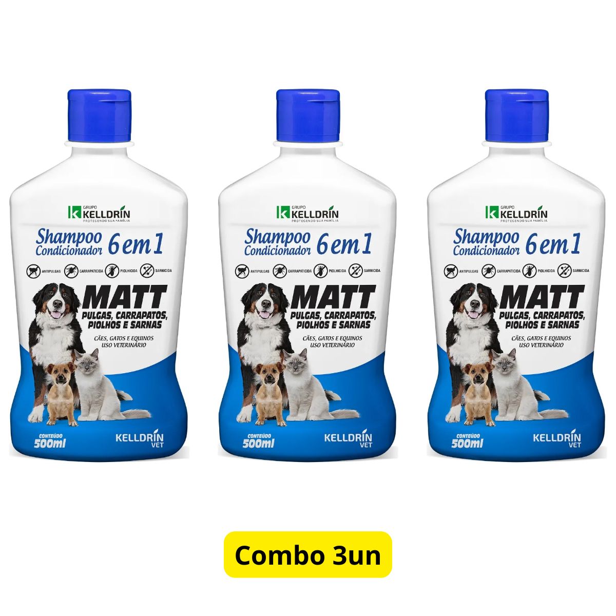 3 UNIDADES SHAMPOO E CONDICIONADOR 6X1 MATT PULGAS 500ML – KELLDRIN