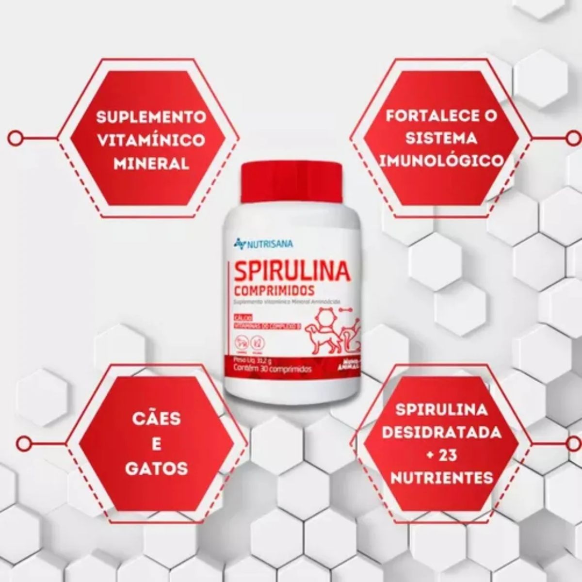 3 Unidades Nutrisana Spirulina – Suplemento completo para saúde e vitalidade dos pets