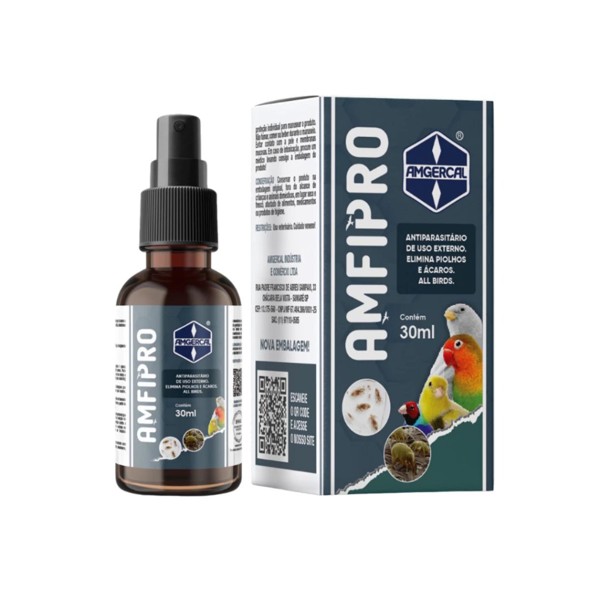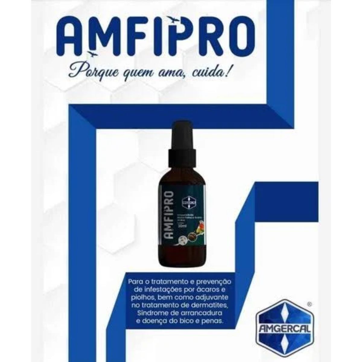 AMFIPRO é um aliado essencial no cuidado com pássaros, oferecendo tratamento e prevenção contra infestações por ácaros e piolhos. Sua fórmula com Fipronil atua de forma rápida e eficiente, ajudando também como adjuvante no combate a dermatites, Síndrome da Arrancadura e Doença do Bico e Penas.
