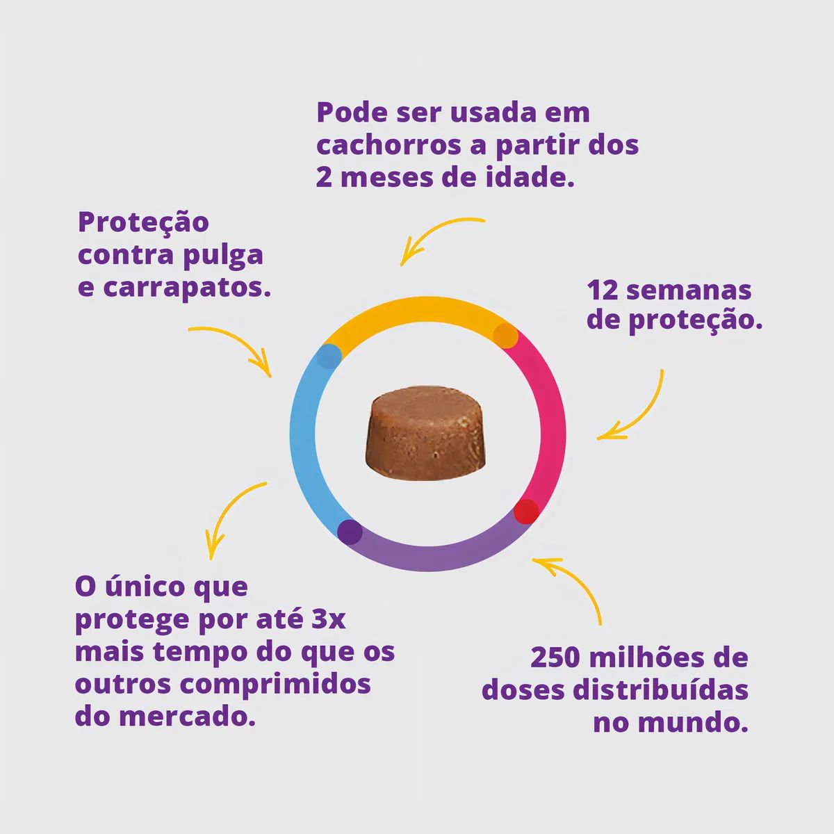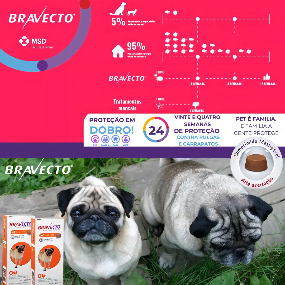 Diga adeus às infestações de pulgas e carrapatos com Bravecto, o comprimido mastigável que oferece até 12 semanas de proteção contínua com uma única dose – quase três vezes mais do que os antipulgas mensais!