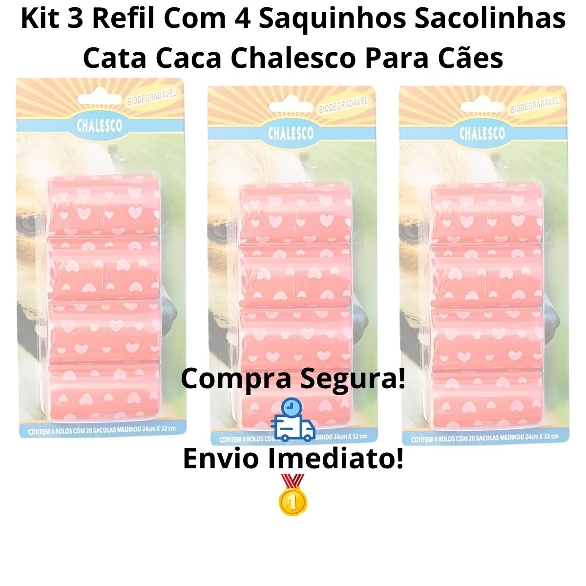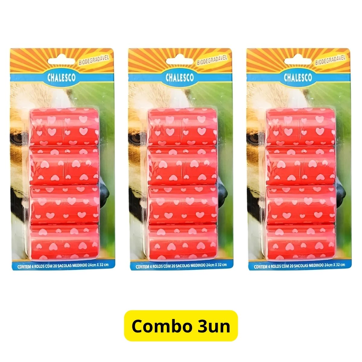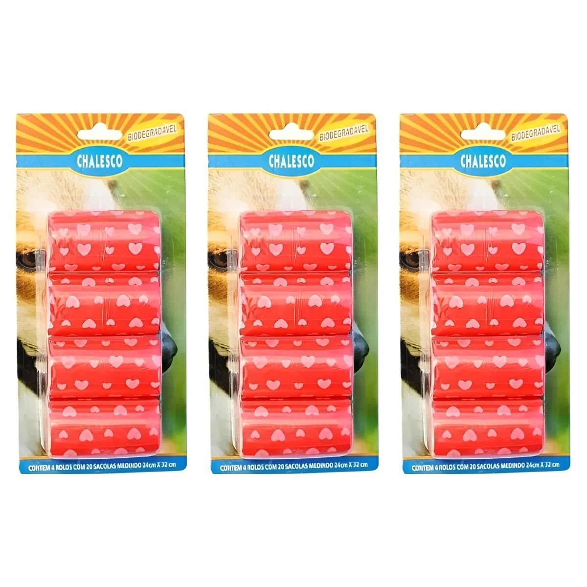 3 REFIL 4 ROLOS COM 20 SAQUINHOS BIODEGRADAVEIS CATA CACA – CHALESCO