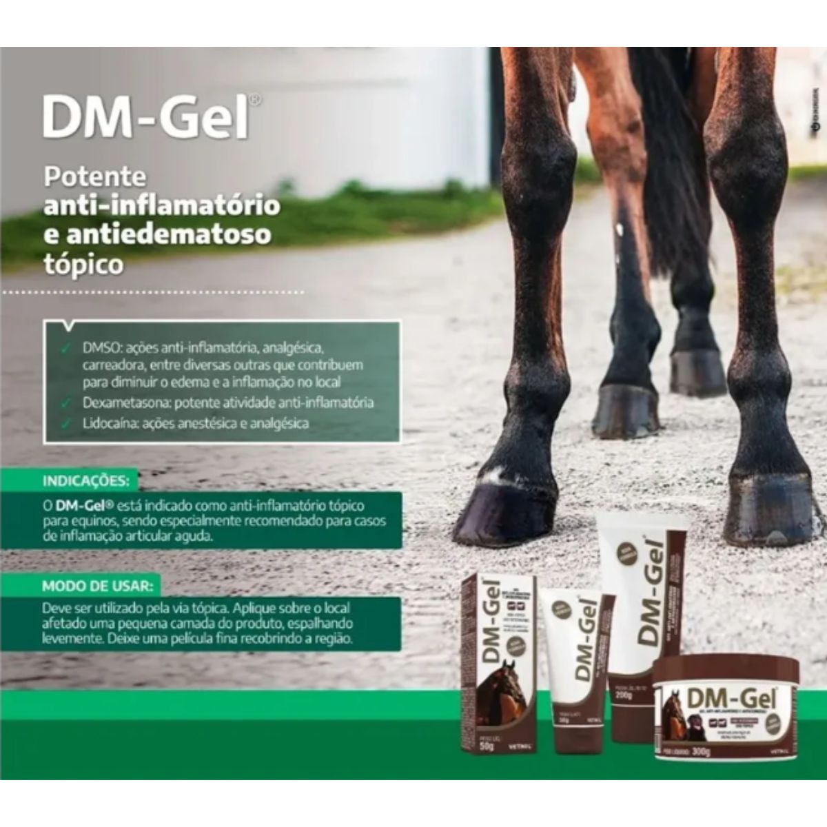 3 Unidades DM GEL 300G ANTI-INFLAMATÓRIO E ANTIEDEMATOSO PARA CAVALOS E CÃES – VETNIL